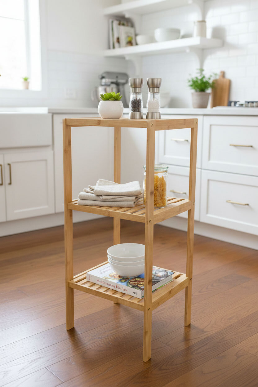 Evinizin her köşesinde düzeni sağlayın! Bu kompakt ve dayanıklı bambu raf; mutfakta kavanoz ve tencere standı, balkonda çiçeklik, antrede ise şık bir ayakkabılık olarak kullanılabilir.