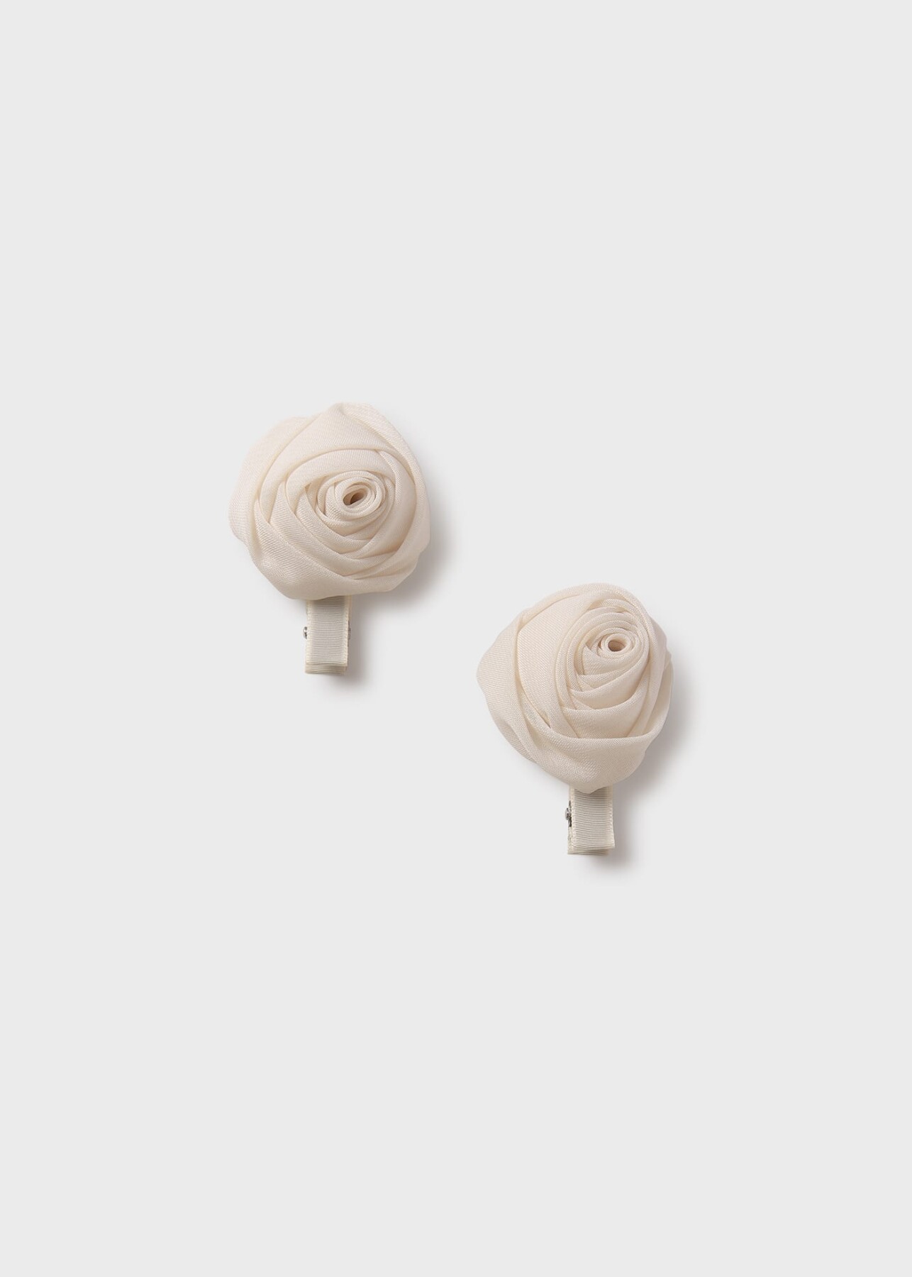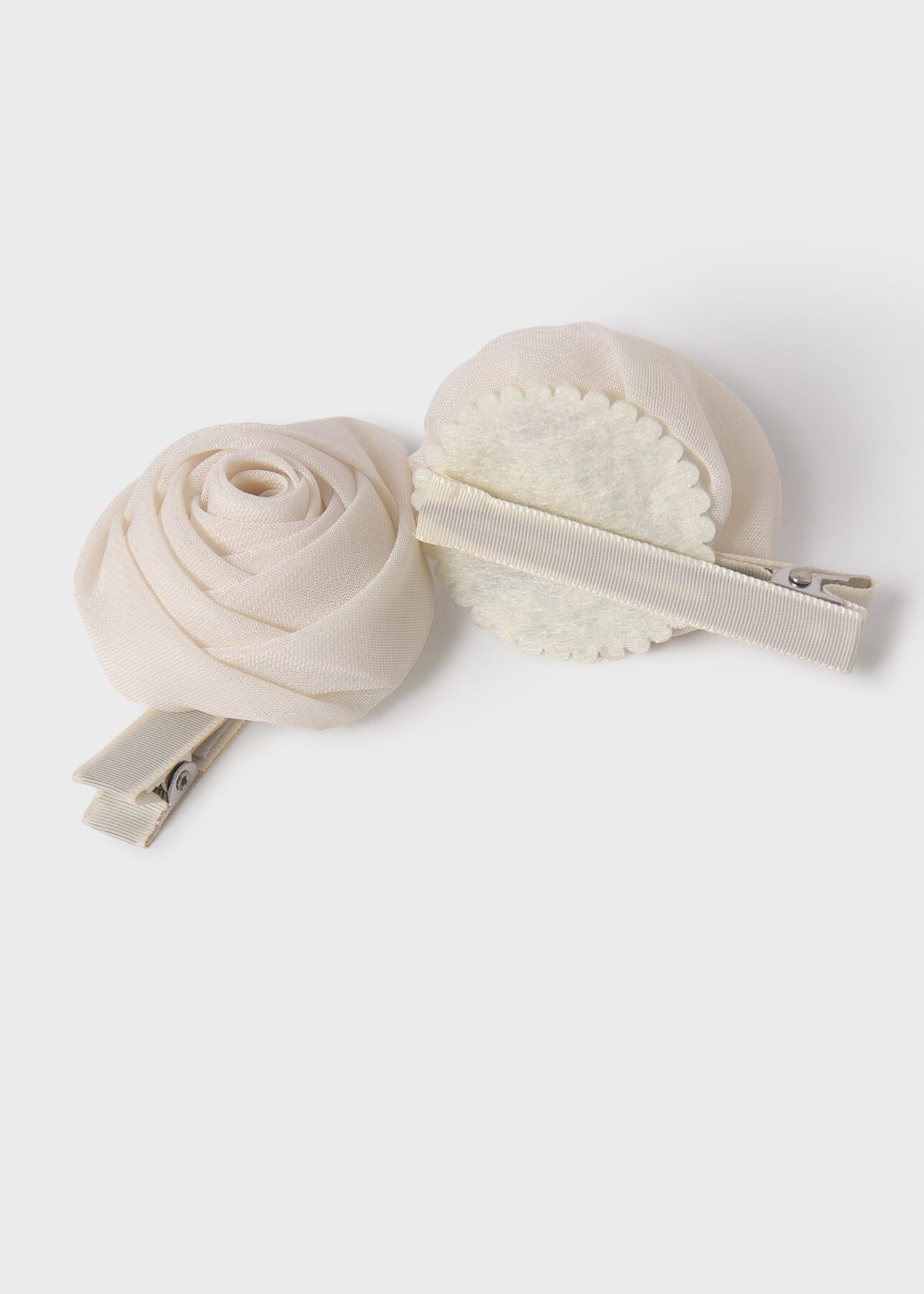 Kız Çocuk 2'Li Şifon Saç Tokası Seti-Krem