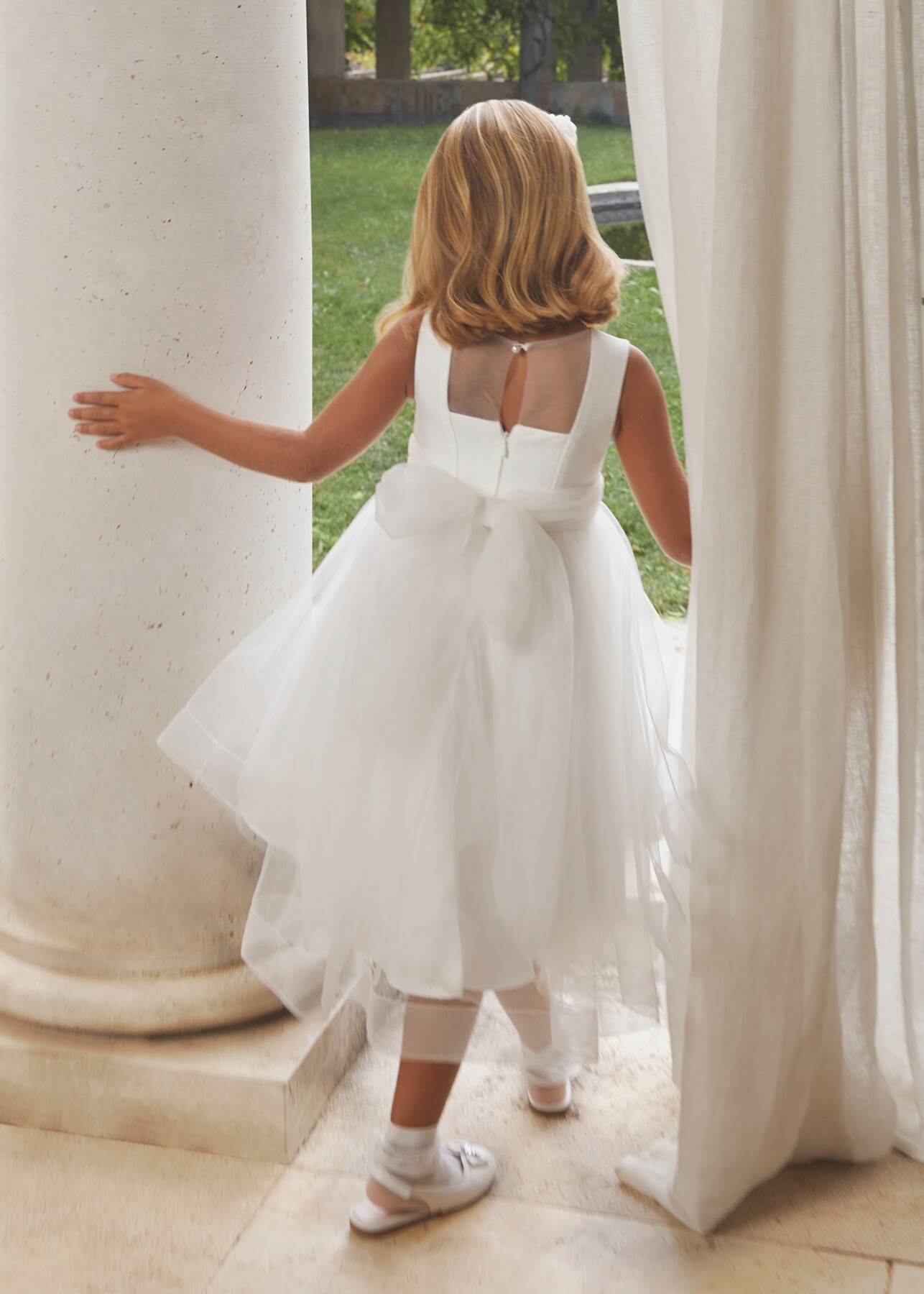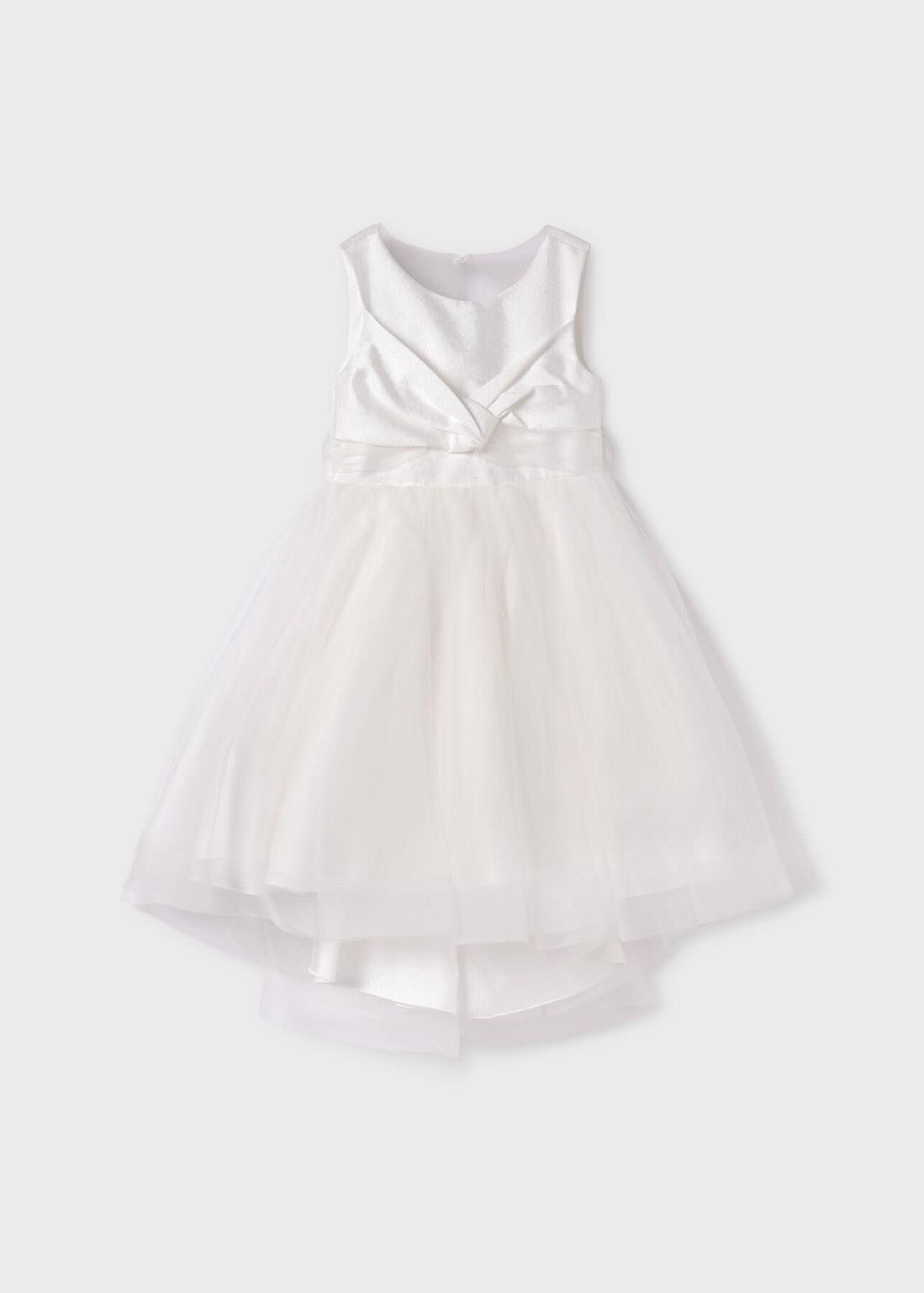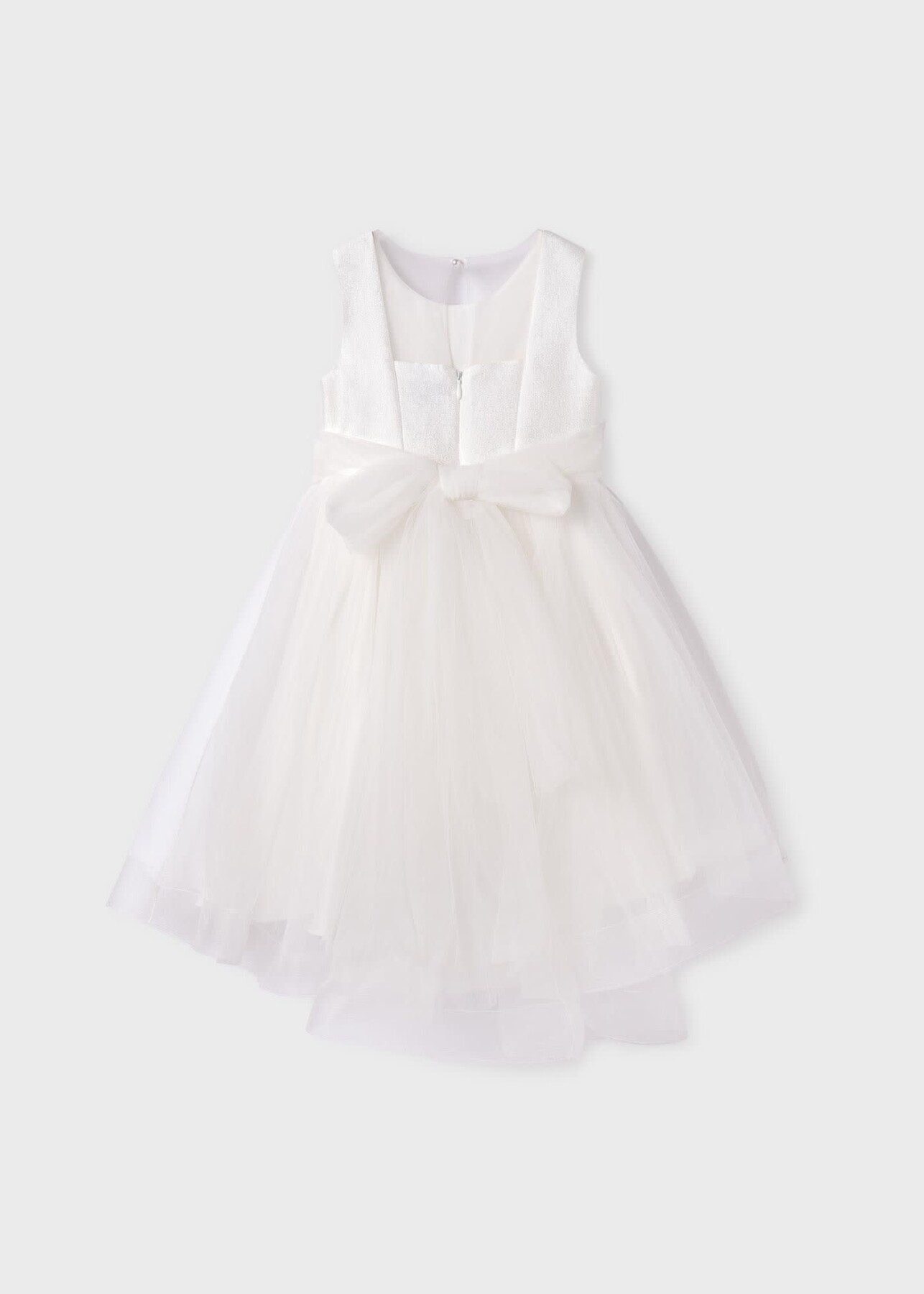 Kız Çocuk Tül Etekli Şifon Elbise-Krem