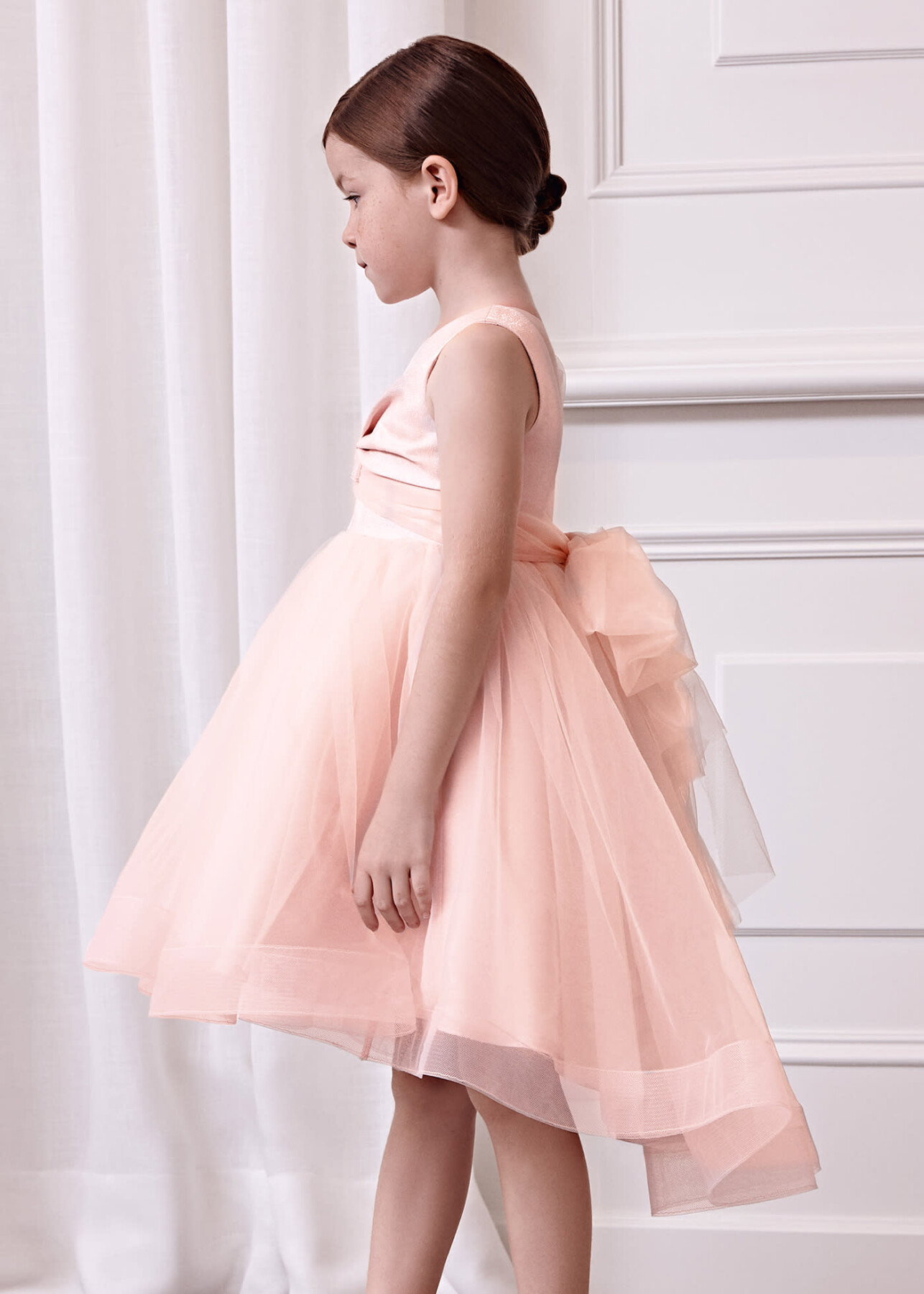 Kız Çocuk Tül Etekli Şifon Elbise-Somon