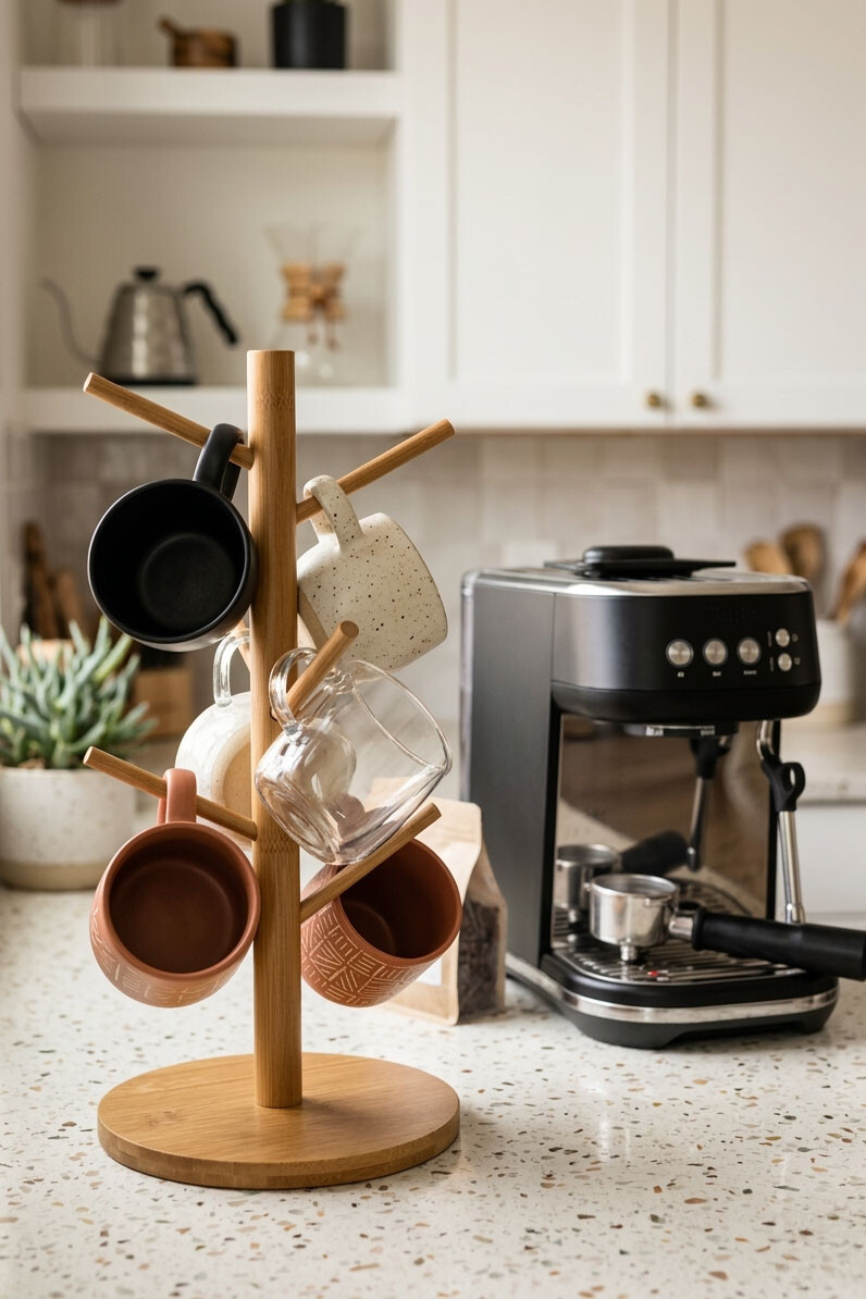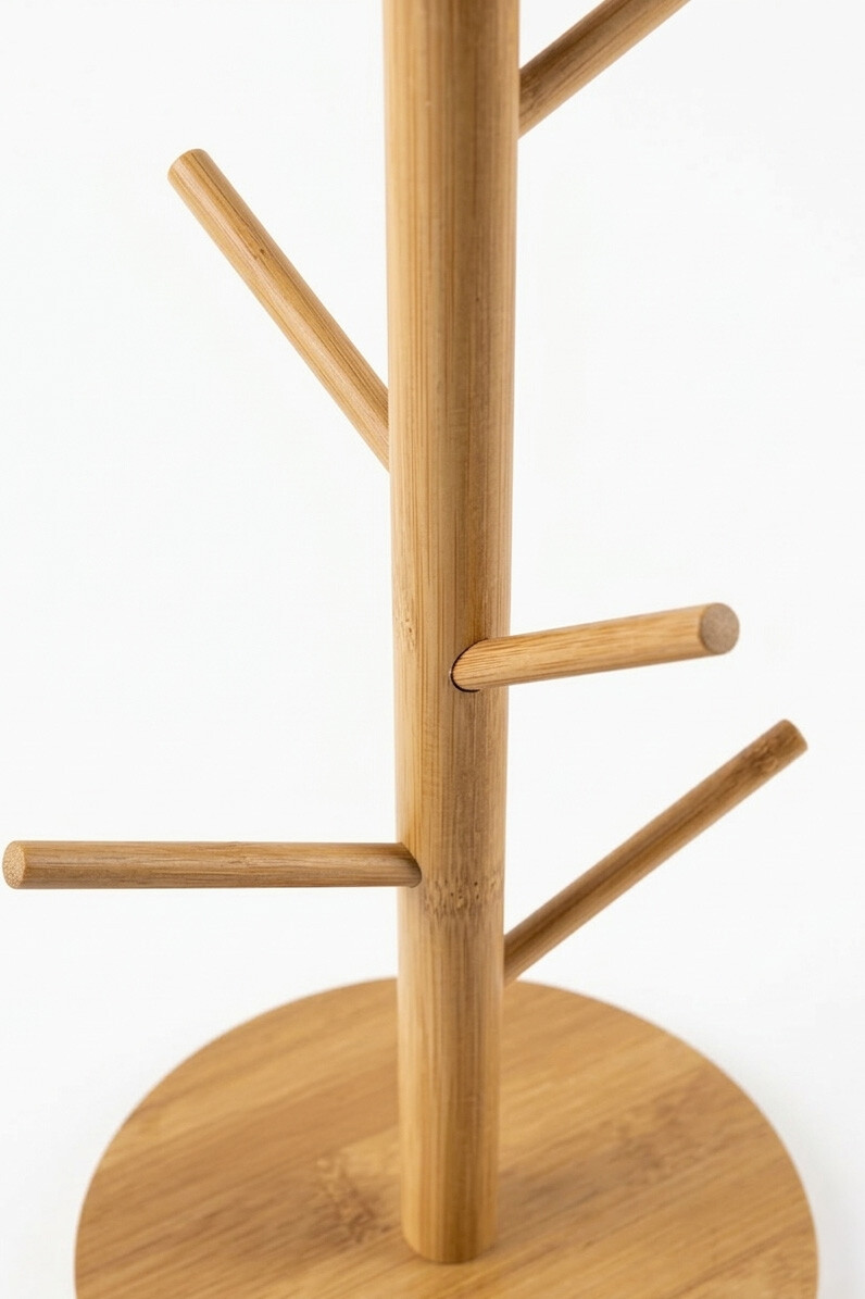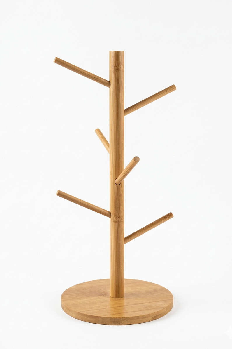 Şık ve doğal tasarımıyla 34 cm ahşap fincan askılığı, kahve fincanları ve kupalarınızı düzenli şekilde saklamanızı sağlar. Kahve köşeleri ve mutfak tezgahları için hem dekoratif hem de pratik bir kullanım sunar.