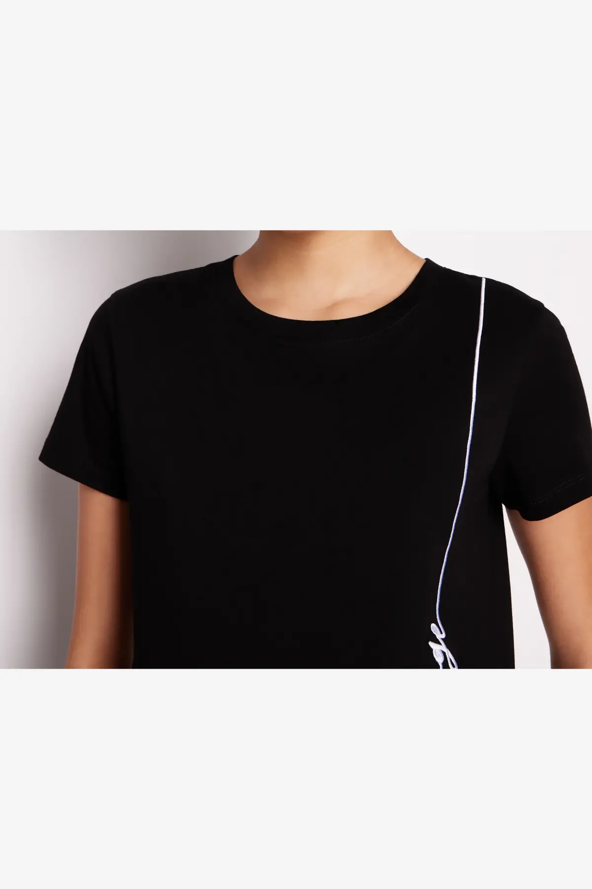Kadın Bisiklet Yaka T-Shirt-Siyah