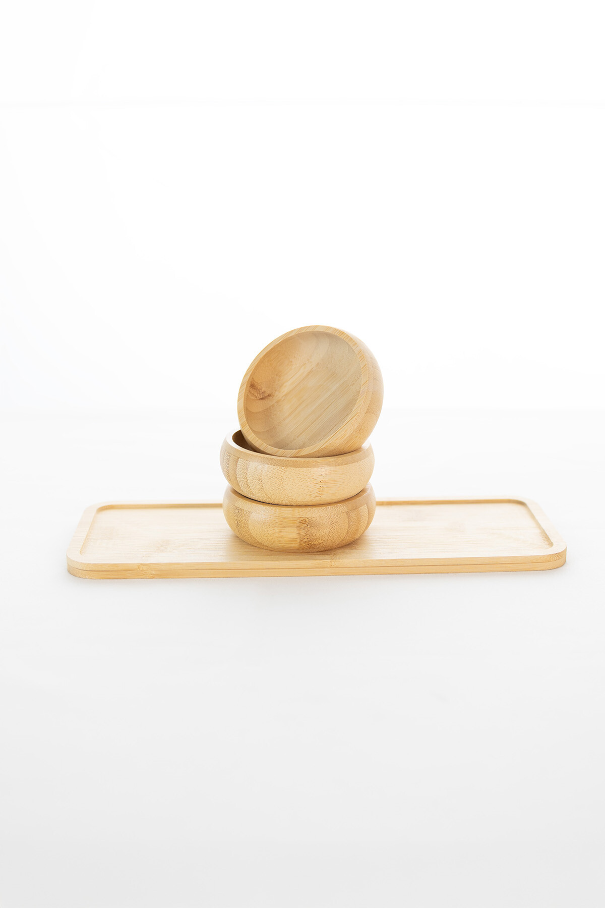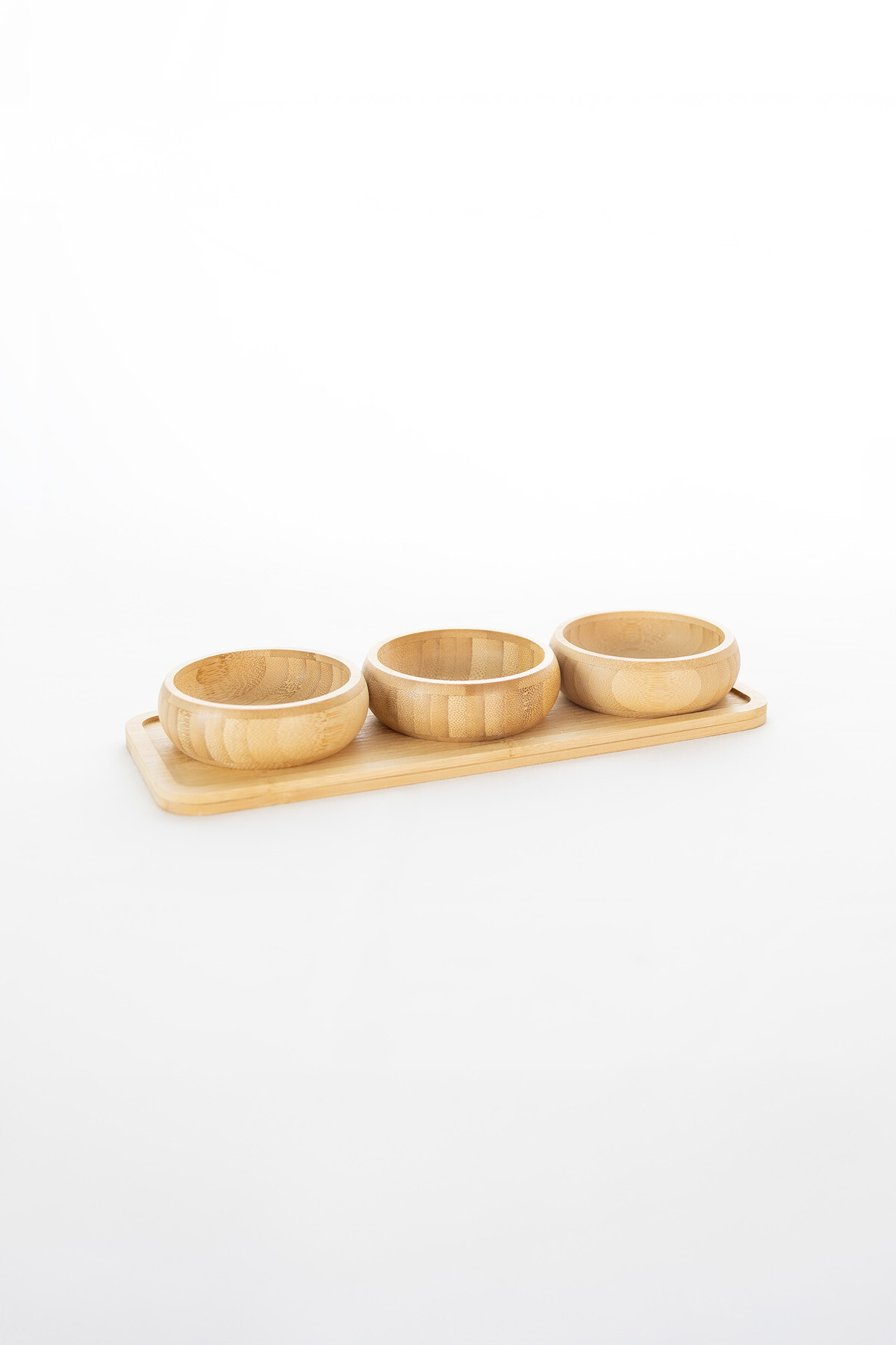 3 adet yuvarlak kase + bambu sunum tepsisi
