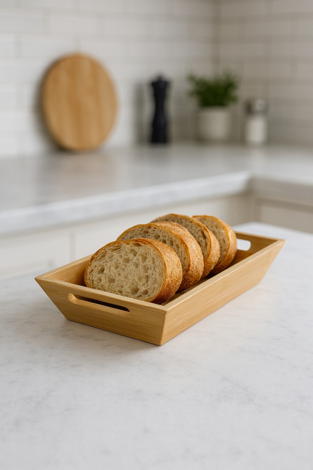 Doğal bambudan üretilen Küçük Bambu Ekmek Sepeti, sofralarınıza şıklık ve doğallık katar. Hafif ve sağlam yapısı sayesinde günlük kullanım için uygundur. Ekmek, poğaça, kurabiye veya kahvaltılık atıştırmalıklar için ideal bir sunum ürünü olarak öne çıkar.