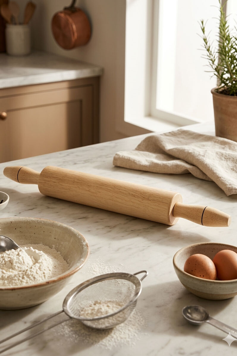 Doğal bambu malzemeden üretilen 46 cm hamur merdanesi, hamur açma işlemlerini kolaylaştırır. Ergonomik tasarımı sayesinde kurabiye, börek, pizza ve hamur işleri için ideal kullanım sunar.