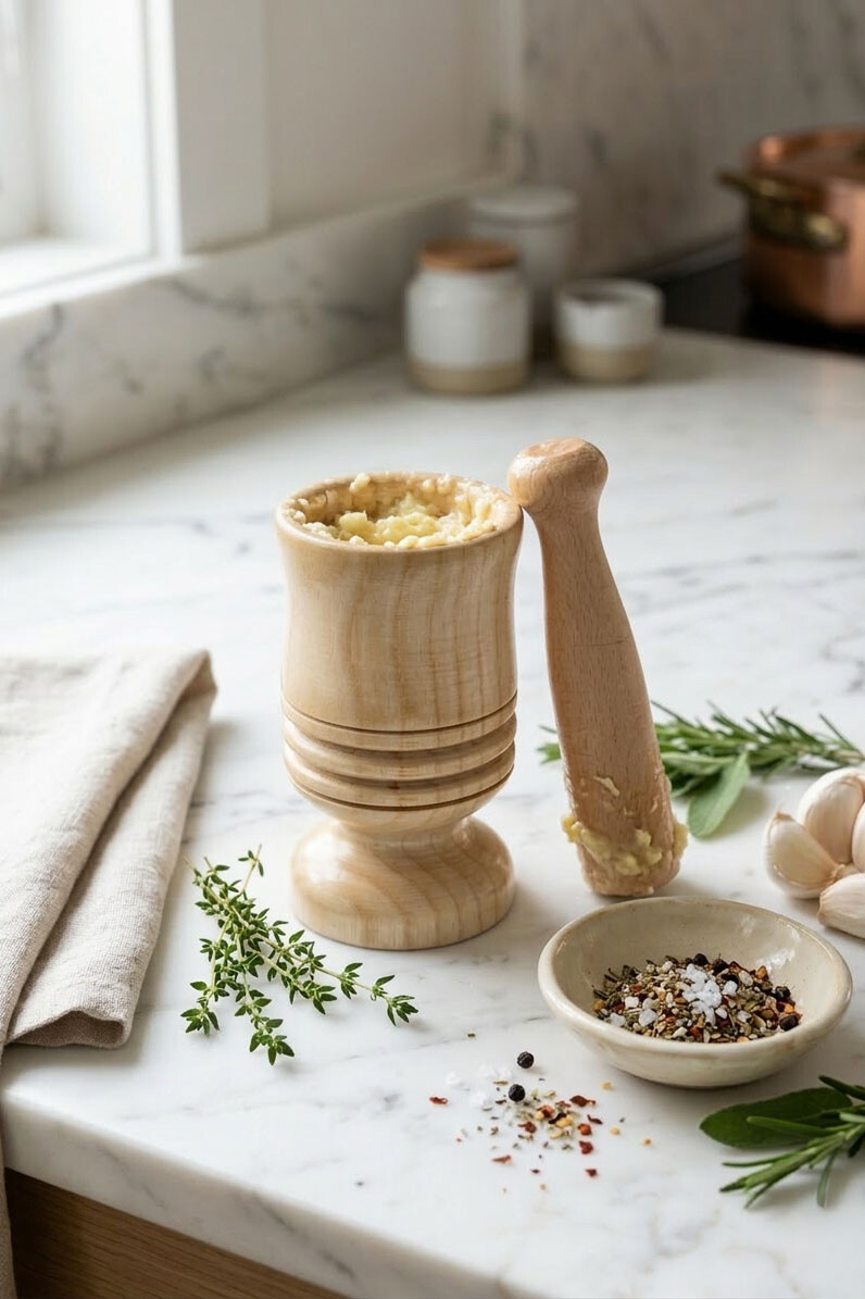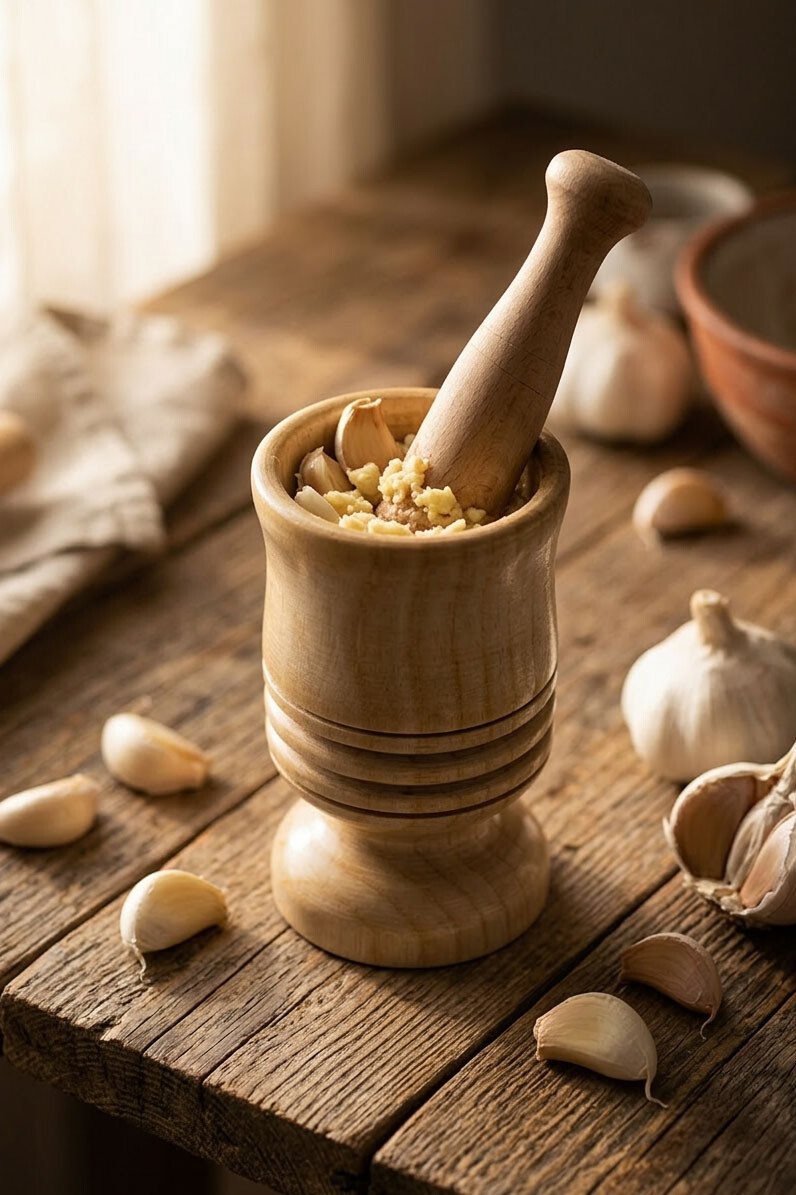 Doğal bambu malzemeden üretilen havan ve tokmak seti, sarımsak, baharat ve çeşitli gıdaları kolayca ezmenizi sağlar. Ergonomik tasarımı sayesinde mutfakta pratik kullanım sunar.