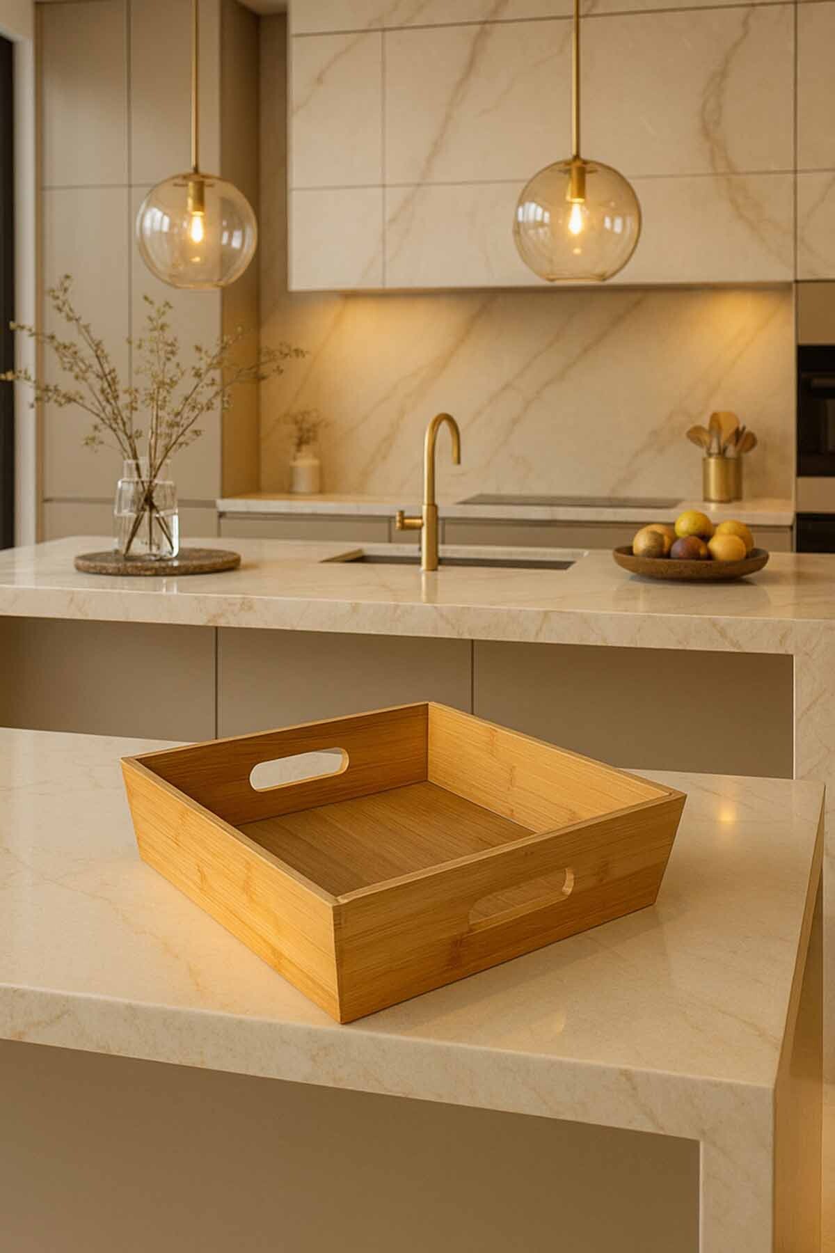 Sofralarınıza zarafet katacak bambu kare tepsi, hem günlük kullanım hem de misafir sunumları için mükemmel bir tercihtir.