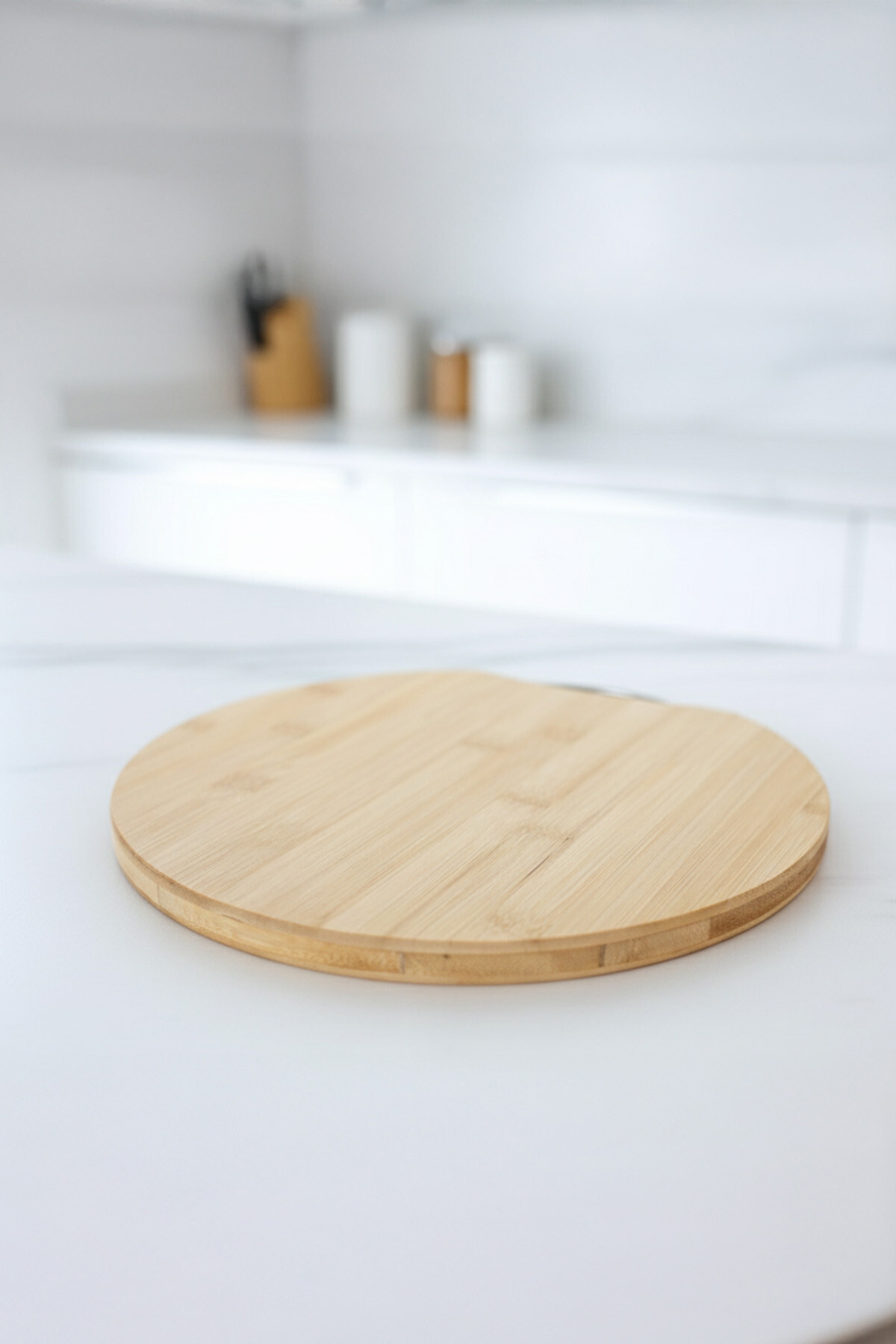 %100 bambudan üretilen 25x25 cm yuvarlak kesme tahtası, küçük boy ölçüsü sayesinde mutfakta pratik kullanım sunar. Sebze, meyve, ekmek veya peynir doğramak için idealdir. Hafif ve kompakt yapısı sayesinde günlük işlerde hızlıca kullanılabilir.