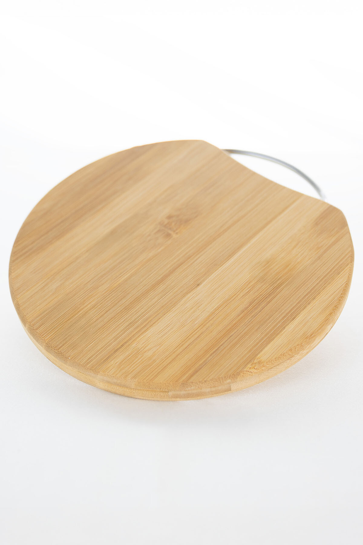 Metal saplı tasarımı hem kolay taşıma hem de askıya asarak pratik saklama imkanı sunar. Bambu ağacının doğal dokusu, mutfağınıza zarafet katarken uzun ömürlü ve sağlıklı bir kullanım sağlar. Ayrıca şarküteri ve kahvaltı sofralarında şık bir sunum tahtası olarak da kullanılabilir.