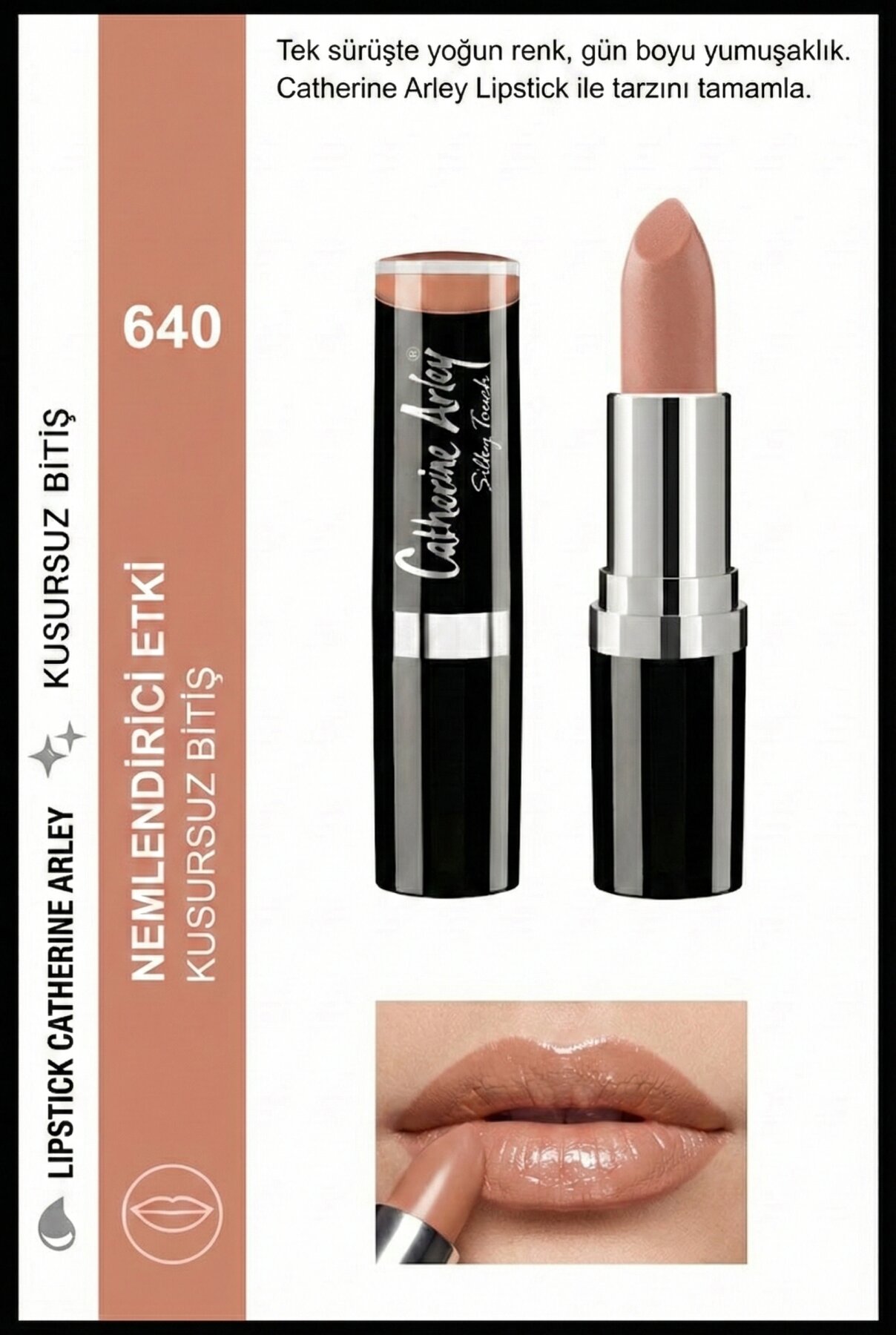 Dudaklarınıza mükemmel ve fark edilir bir ifade katan bu nemlendirici etkili stick ruj, pürüzsüz yapısıyla makyajınıza uzun süre kalıcı ve kusursuz bir boyut kazandırır. 640 numaralı bu doğal bej ve soft nude alt tonlu zarif renk, dudak yüzeyinde mükemmel bir şekilde eşit dağılım sağlayarak uzun saatler boyunca ilk sürüldüğü anki canlı görünümünü korur. Geliştirilmiş zengin formülü sayesinde dudaklarınızı neme doyurup daha bakımlı görünmesini sağlarken; ipeksi dokunuş sunan yapısı, şık siyah gövdesi, gümüş detayları ve içindeki rengi yansıtan pratik kapak tasarımıyla makyaj çantanıza modern bir zarafet katar.