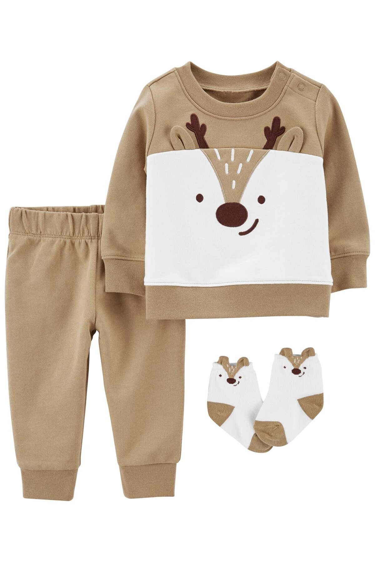 Bebek 3'Lü Alt Üst Set - Kahverengi