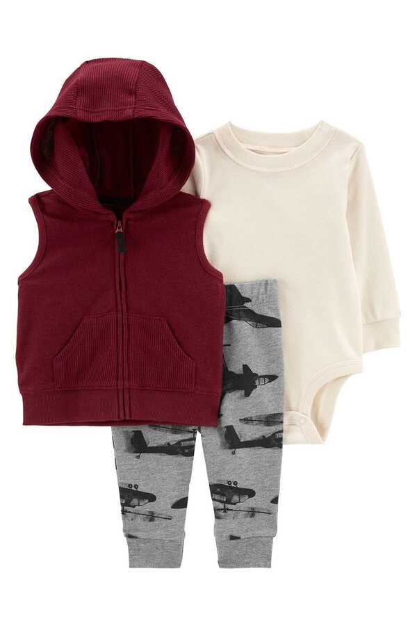 Erkek Bebek 3'Lü Yelek Set-Kırmızı