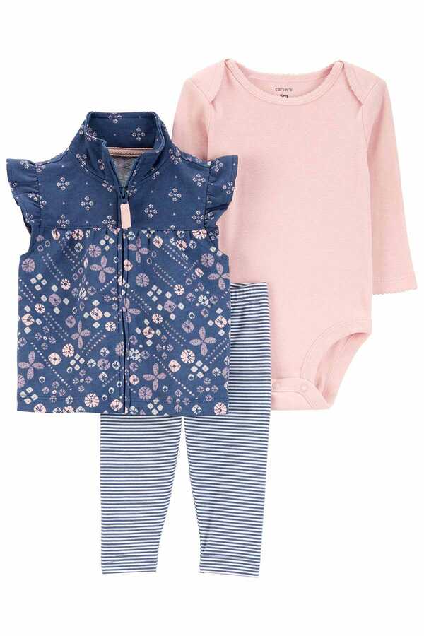 Kız Bebek 3'Lü Yelek Set - Mavi
