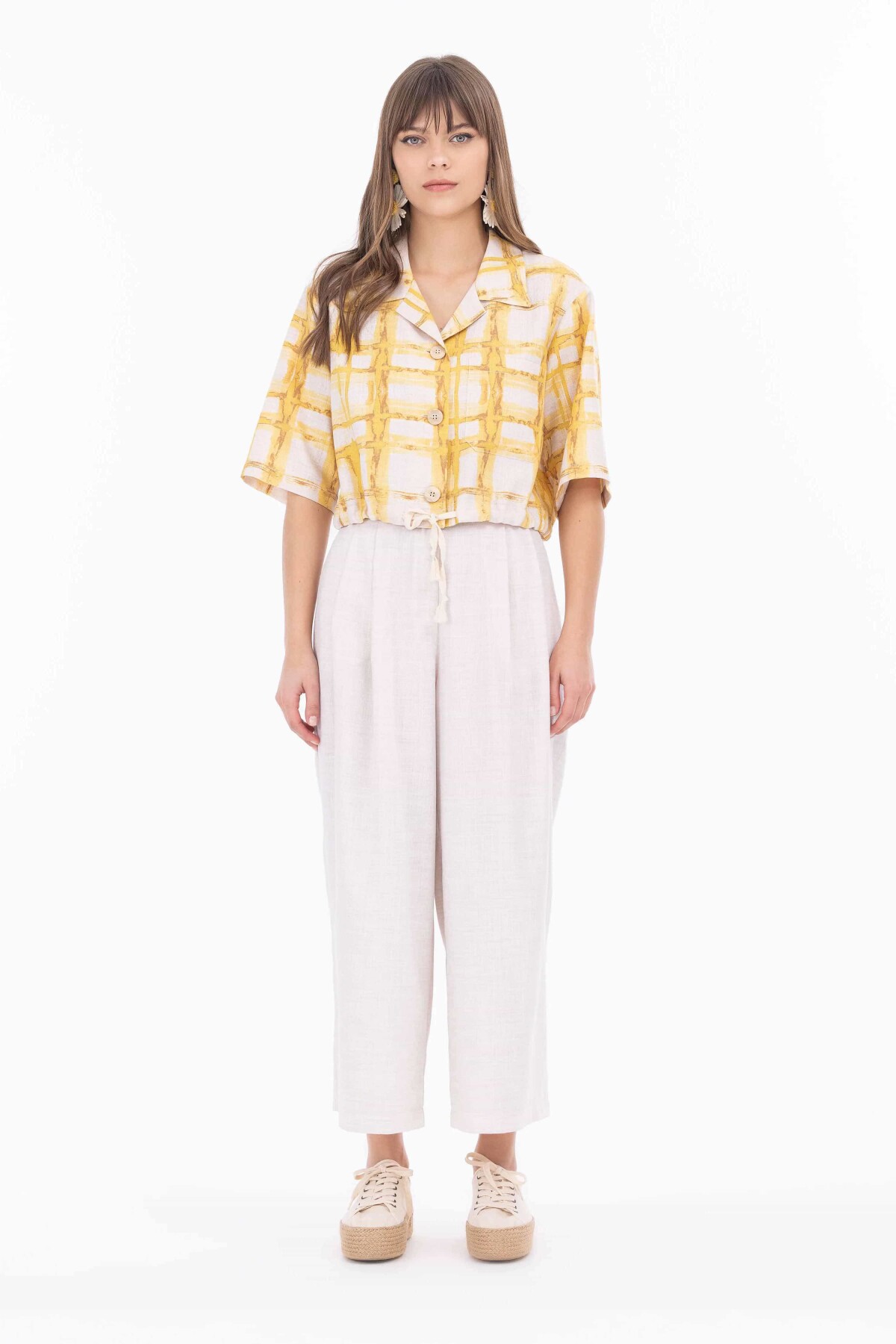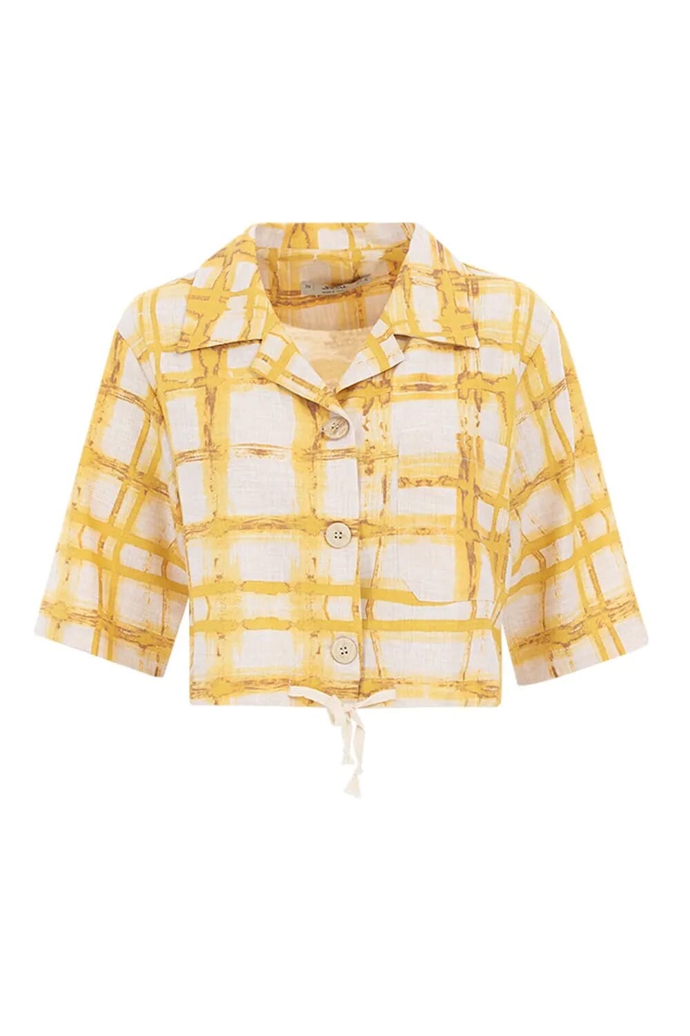 Ceket Yaka Bağcık Detaylı Gömlek - Sarı