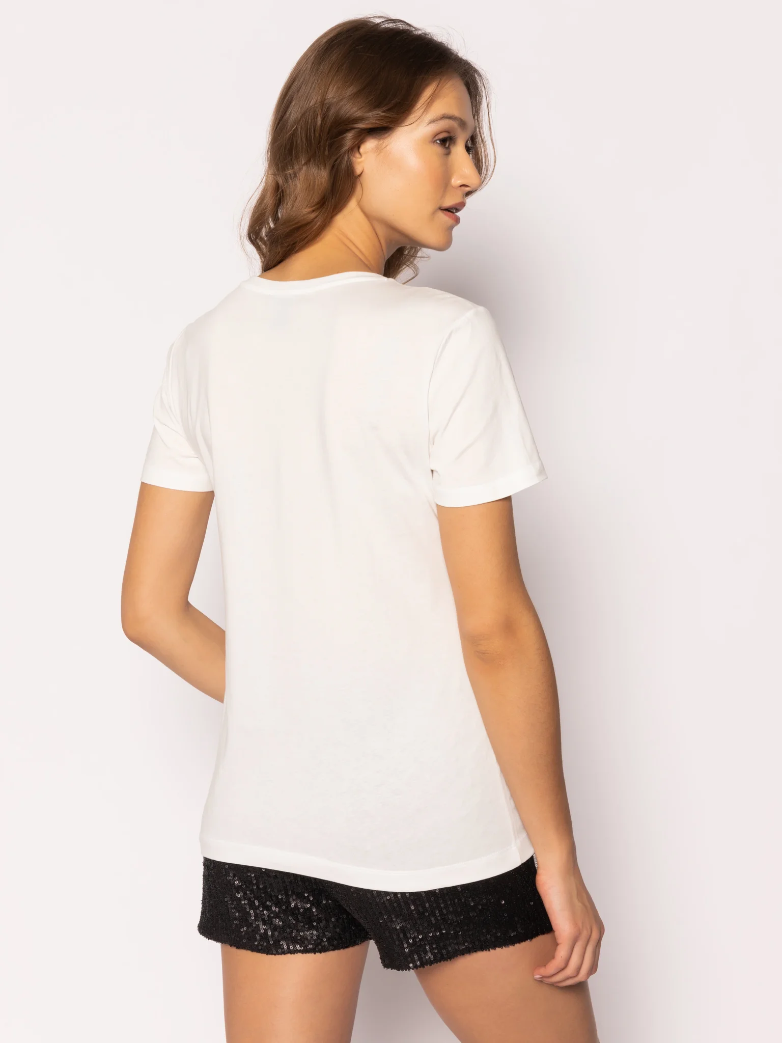 Kadın Bisiklet Yaka T-Shirt-Beyaz Siyah