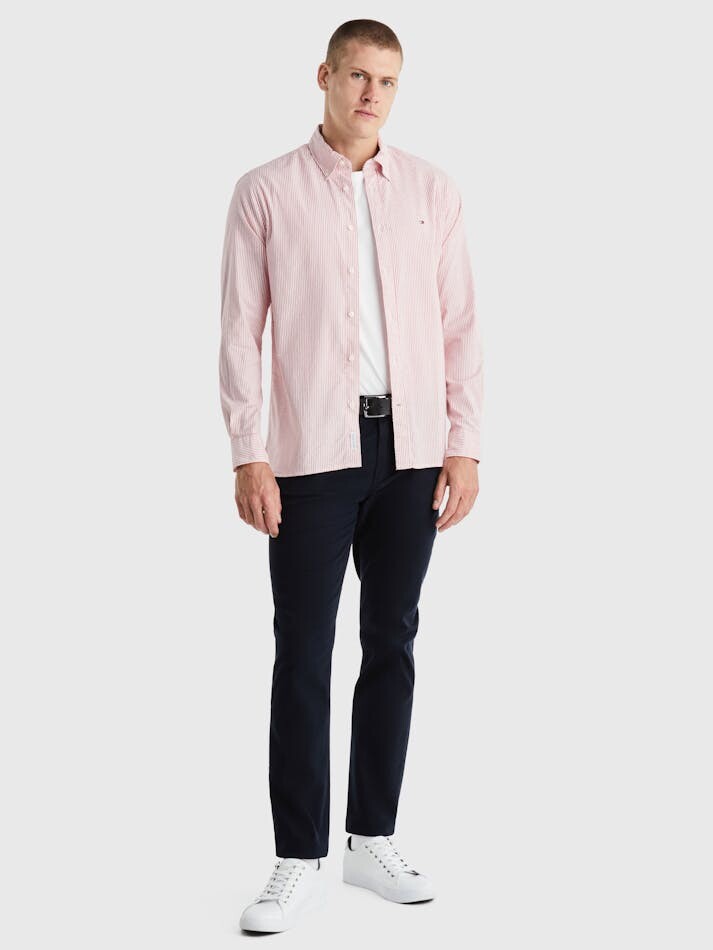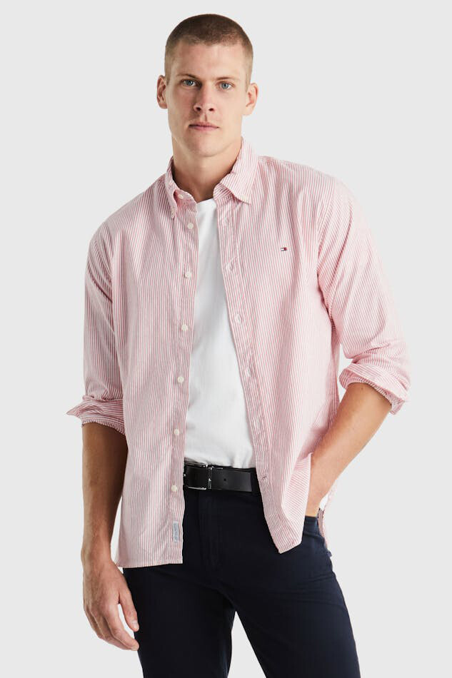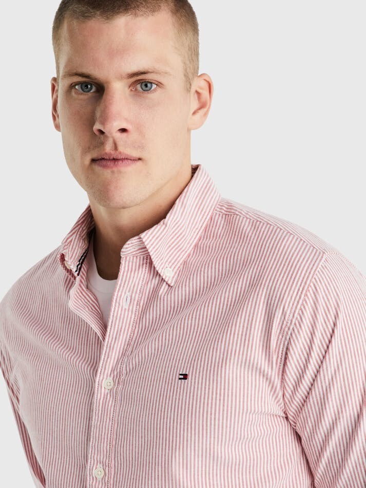 Erkek 1985 Flex Oxford Çizgili Rf Gömlek - Kırmızı