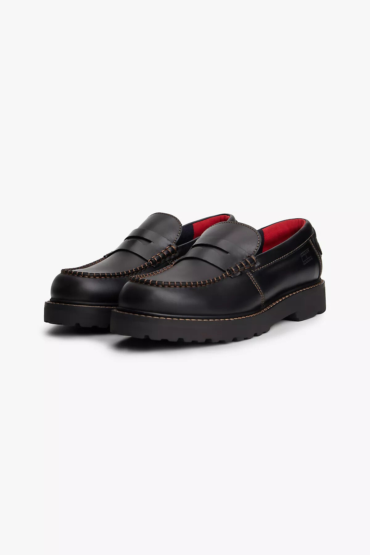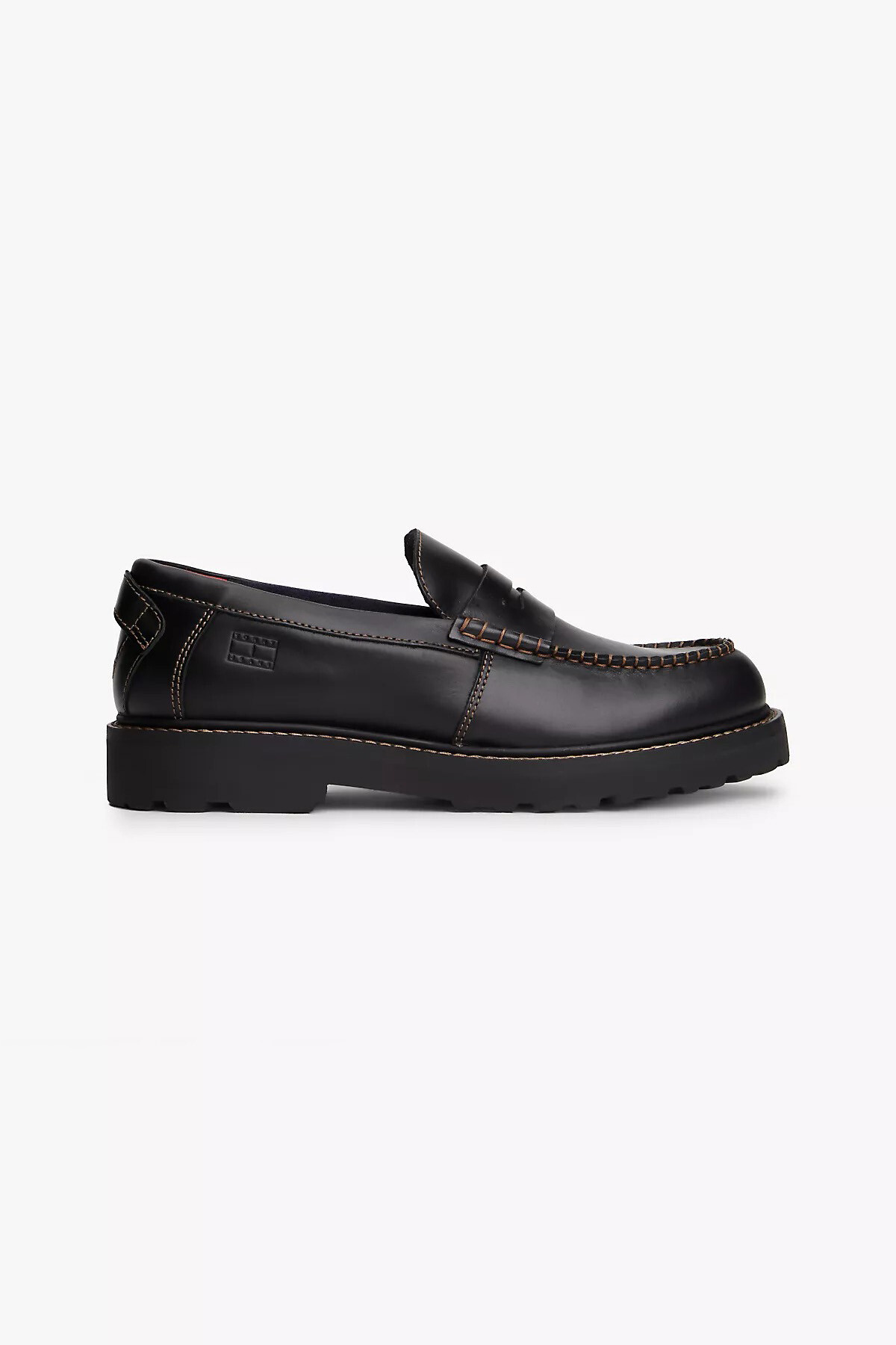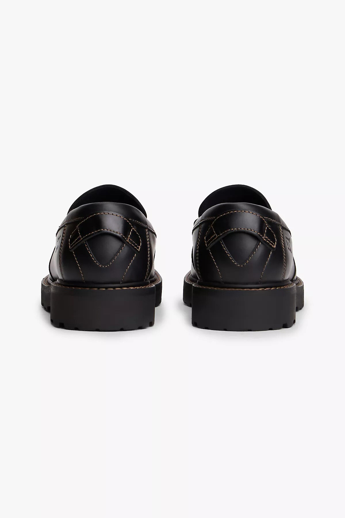 Kalın dişli taban yapısı ve belirgin kontrast dikiş detaylarıyla klasik loafer tasarımını modern sokak modasına uyarlayan bu ayakkabı, adımlarınıza güçlü ve maskülen bir karakter kazandırır. %100 inek derisi dış yüzeyi, pürüzsüz dokusuyla premium bir kalite hissi verirken zamanla ayağınızın şeklini alarak uzun ömürlü bir konfor sunar. Vamp kısmındaki ikonik penny bant detayı ve yanlardaki zarif dikişler, tasarıma zamansız bir şıklık ekler. Derin oluklu taban tasarımı, sadece üstün zemin tutuşu sağlamakla kalmaz, aynı zamanda ayakkabıya hacimli ve trend bir silüet katarak sıradan bir klasik ayakkabıdan ayrışmasını sağlar. Yan kısımdaki tonal kabartma logo, siyahın asaletini bozmadan minimal bir imza atar.