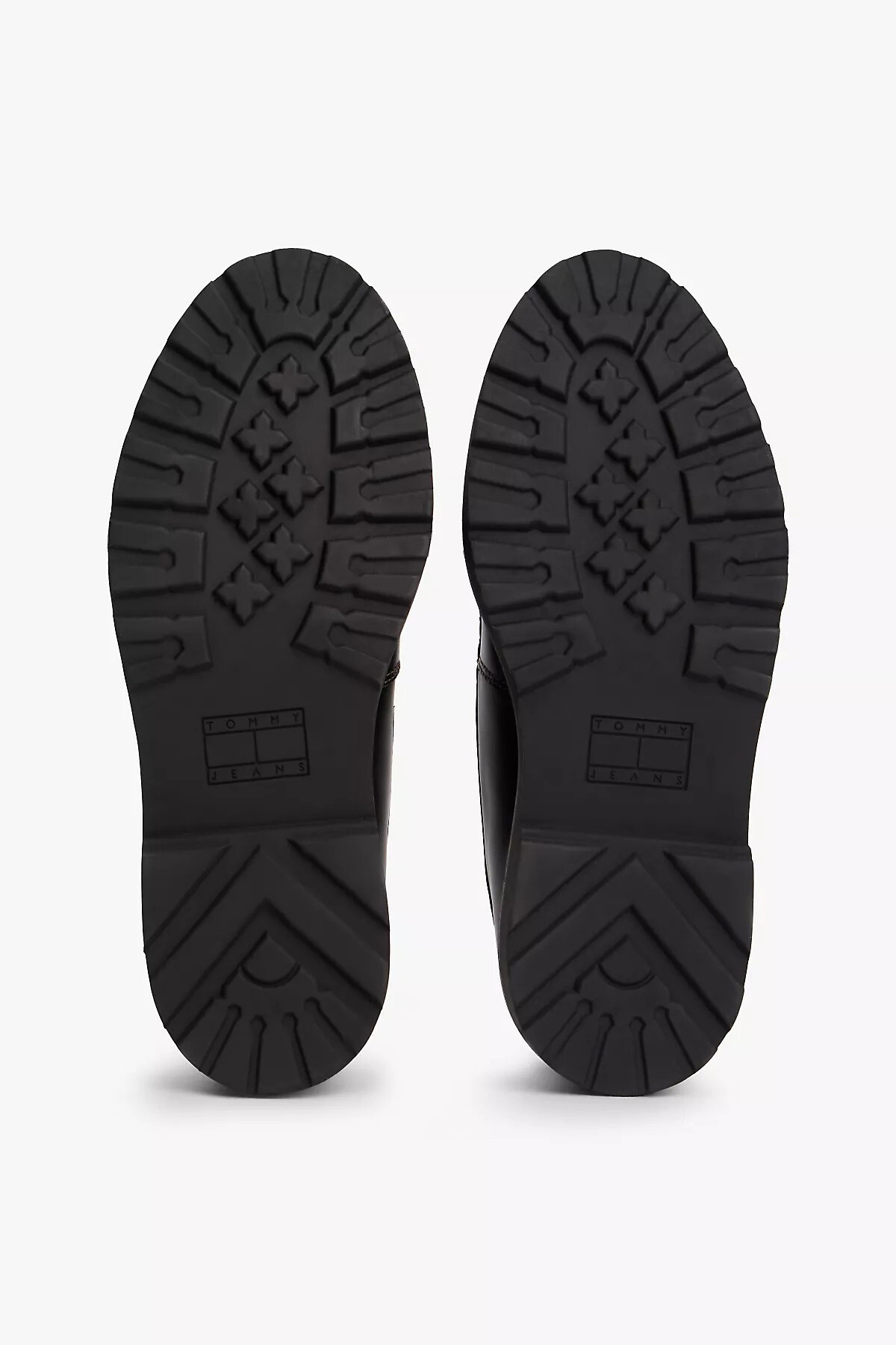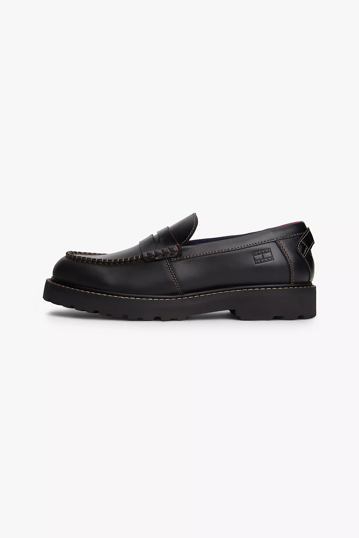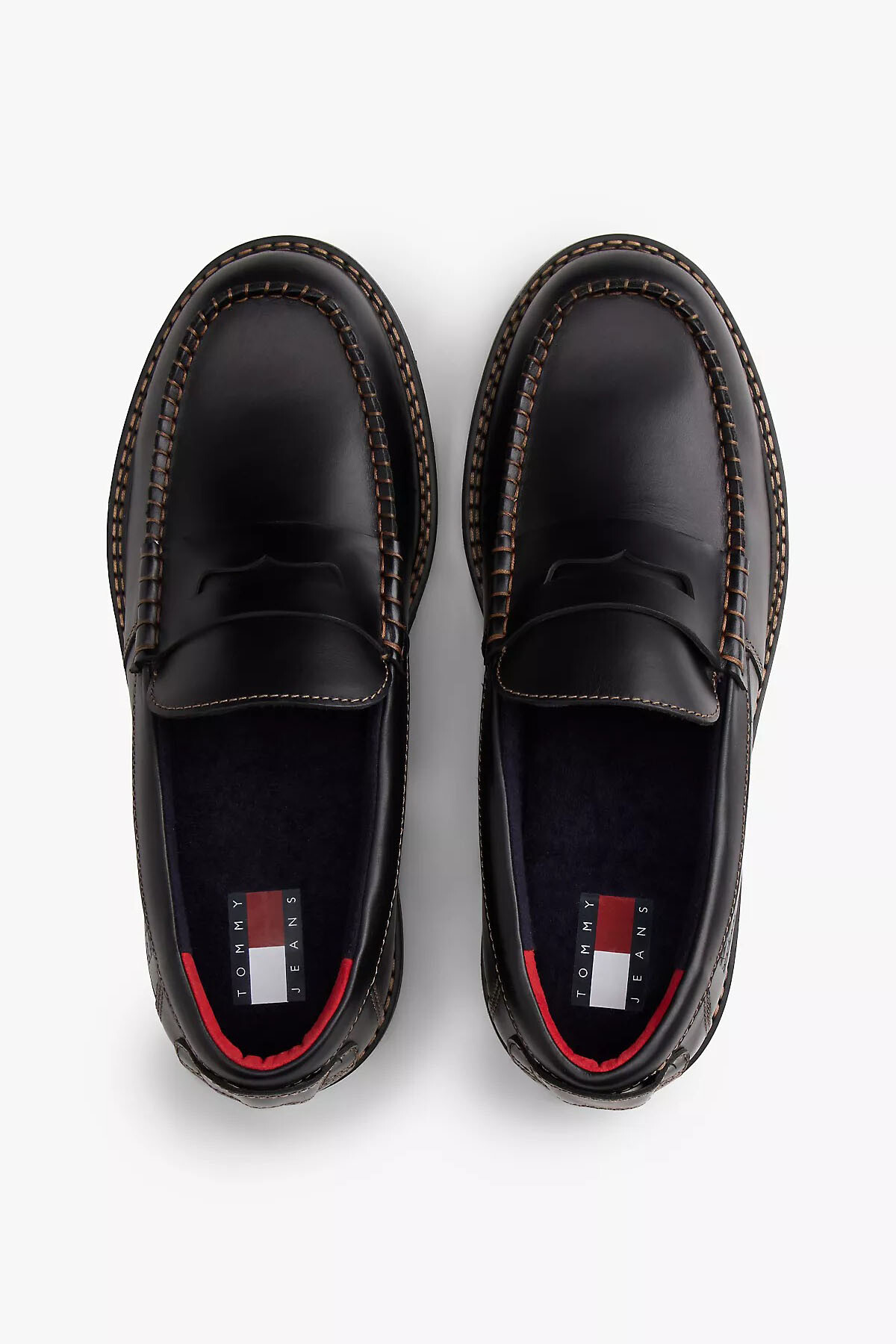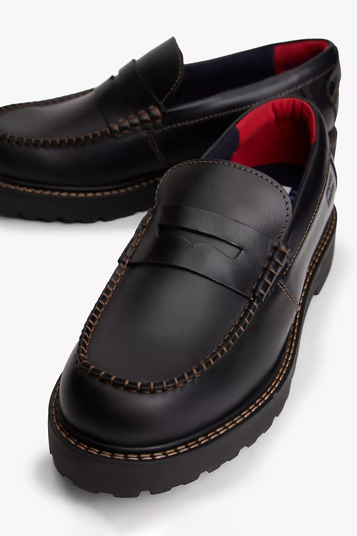 Kalın dişli taban yapısı ve belirgin kontrast dikiş detaylarıyla klasik loafer tasarımını modern sokak modasına uyarlayan bu ayakkabı, adımlarınıza güçlü ve maskülen bir karakter kazandırır. %100 inek derisi dış yüzeyi, pürüzsüz dokusuyla premium bir kalite hissi verirken zamanla ayağınızın şeklini alarak uzun ömürlü bir konfor sunar. Vamp kısmındaki ikonik penny bant detayı ve yanlardaki zarif dikişler, tasarıma zamansız bir şıklık ekler. Derin oluklu taban tasarımı, sadece üstün zemin tutuşu sağlamakla kalmaz, aynı zamanda ayakkabıya hacimli ve trend bir silüet katarak sıradan bir klasik ayakkabıdan ayrışmasını sağlar. Yan kısımdaki tonal kabartma logo, siyahın asaletini bozmadan minimal bir imza atar.