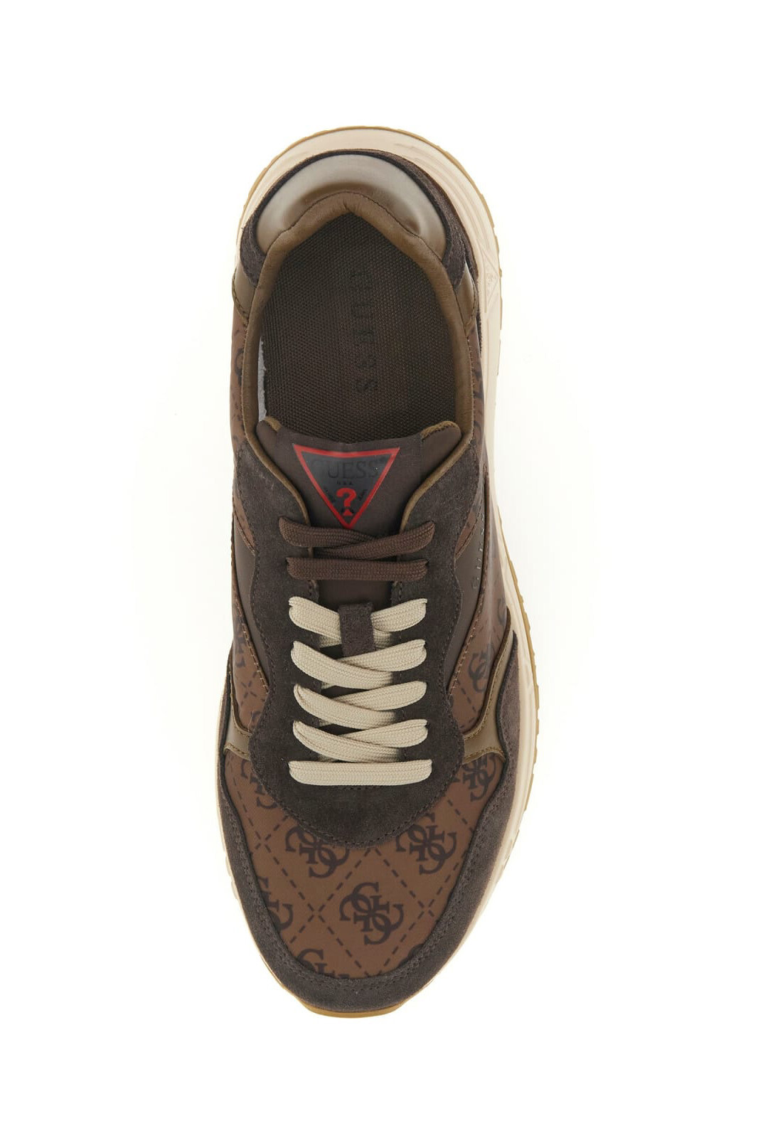 Detay: Kontrast kahverengi süet ve deri paneller, dilde Guess logo amblemi, krem rengi orta taban ve tırtıklı taba dış taban