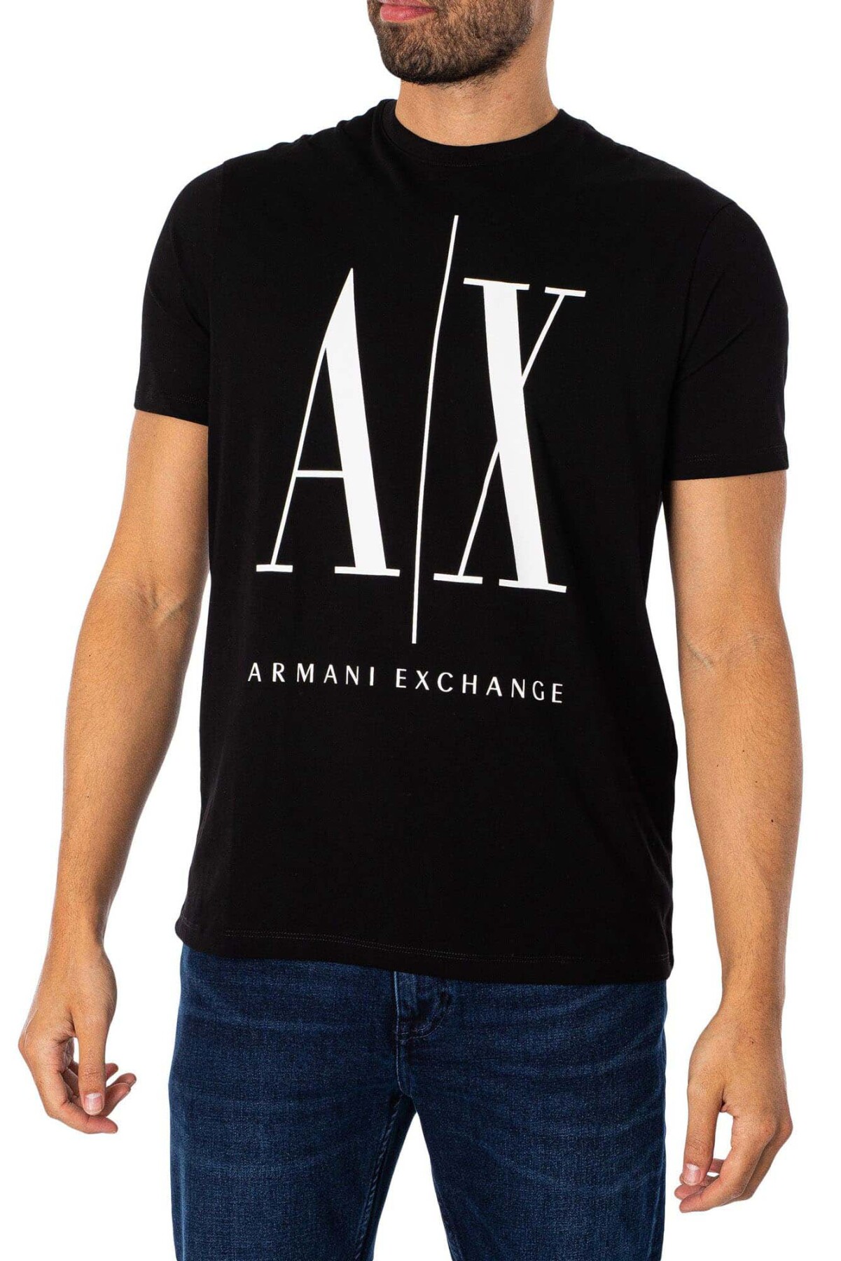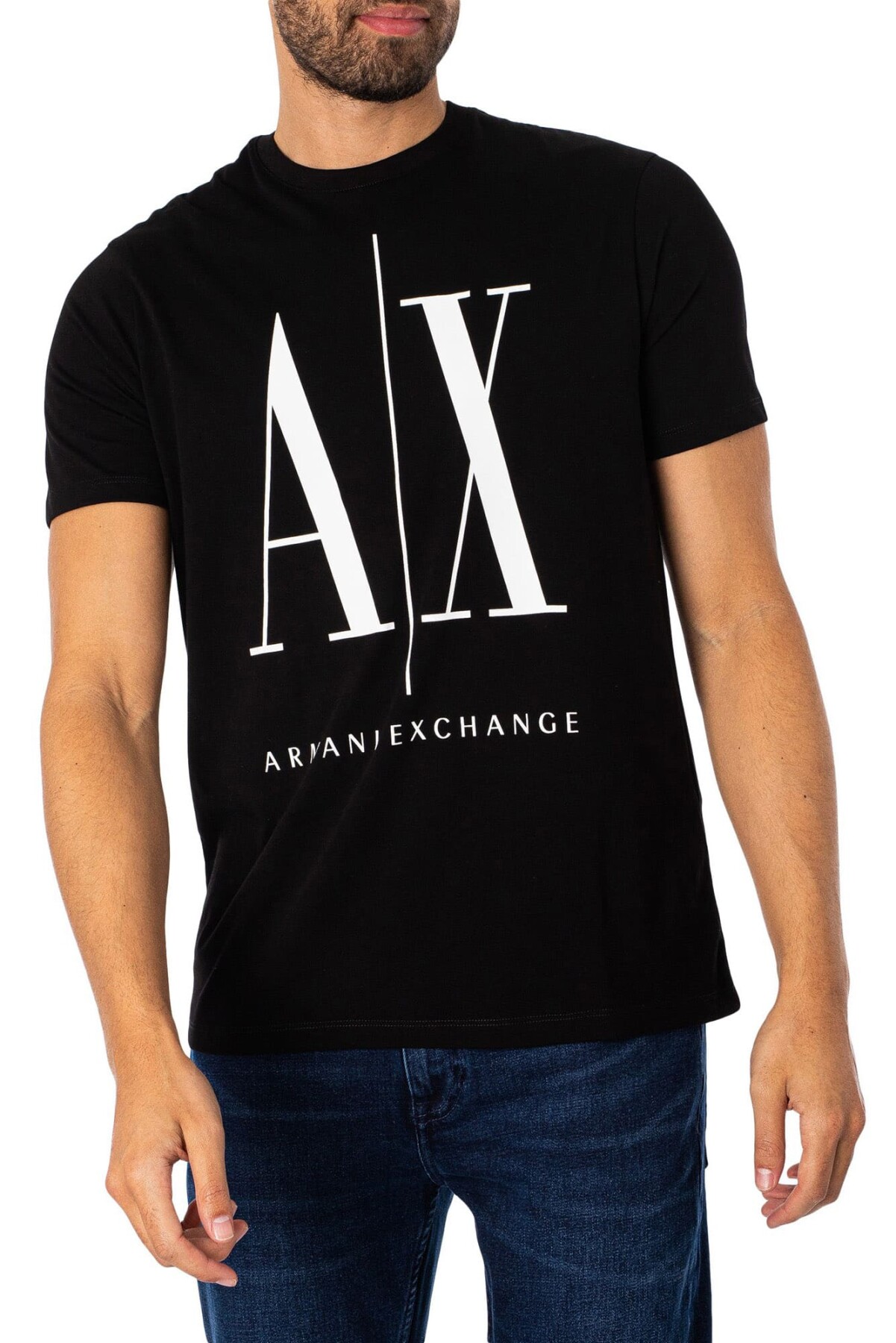 Erkek AX Büyük Logo T-Shirt - Siyah
