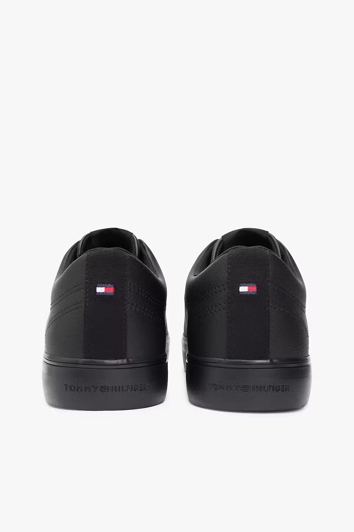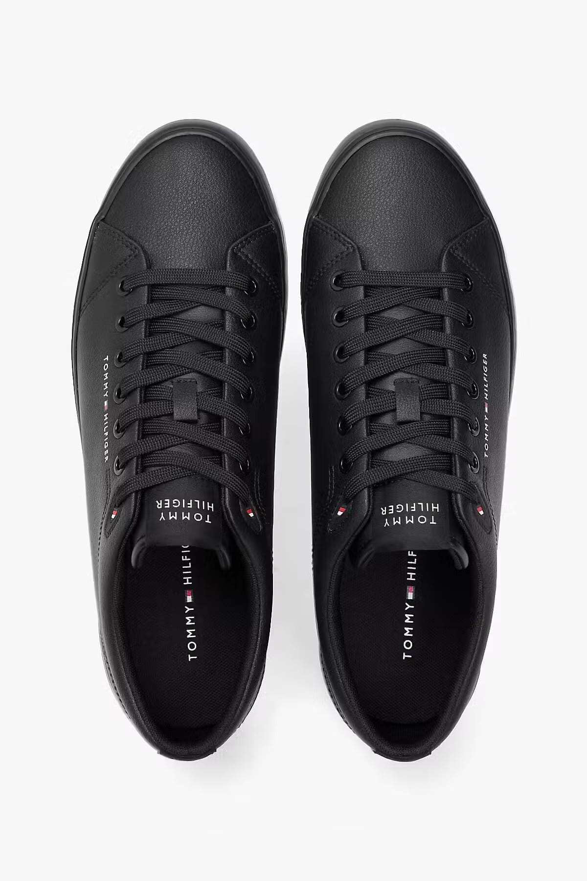 Şehir hayatının sade ve güçlü stil kodlarını yansıtan bu siyah spor ayakkabı, estetiğiyle tepeden tırnağa monokrom ve asil bir şıklık sunar. Üst yüzeyinde kullanılan %50 geri dönüştürülmüş deri lifi, sürdürülebilir modayı desteklerken dayanıklılık ve premium bir doku sağlar. Klasik vulkanize taban görünümü, yan kısımdaki minimal marka logosu ve metal kuşgözü detaylarıyla birleşerek modern bir silüet oluşturur. Siyah dış taban duvarı ve zemin tutuşu sağlayan desenli alt tabanı ile hem konforlu hem de stil sahibi adımlar atmanızı sağlar.