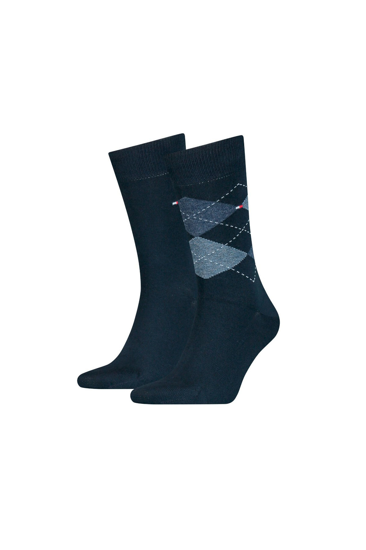 Lacivertin zamansız asaletini klasik İngiliz tarzı baklava deseniyle buluşturan bu 2'li çorap seti, stil sahibi erkeklerin gardırobunda olması gereken temel parçalardan biridir. Paketin içinde yer alan birinci çift, düz koyu lacivert rengiyle her türlü resmi kıyafetle kusursuz bir uyum sağlarken; ikinci çift, lacivert zemin üzerine işlenmiş geometrik baklava desenleriyle kombinlerinize sofistike bir hareket katar. Konç kısmındaki ikonik bayrak logosu, markanın seçkin mirasını yansıtır. Yumuşak pamuklu dokusu ve esnek yapısı sayesinde gün boyu ayağınızı rahat ettiren bu set, hem ofis şıklığında hem de günlük kullanımda ideal bir seçenektir.
