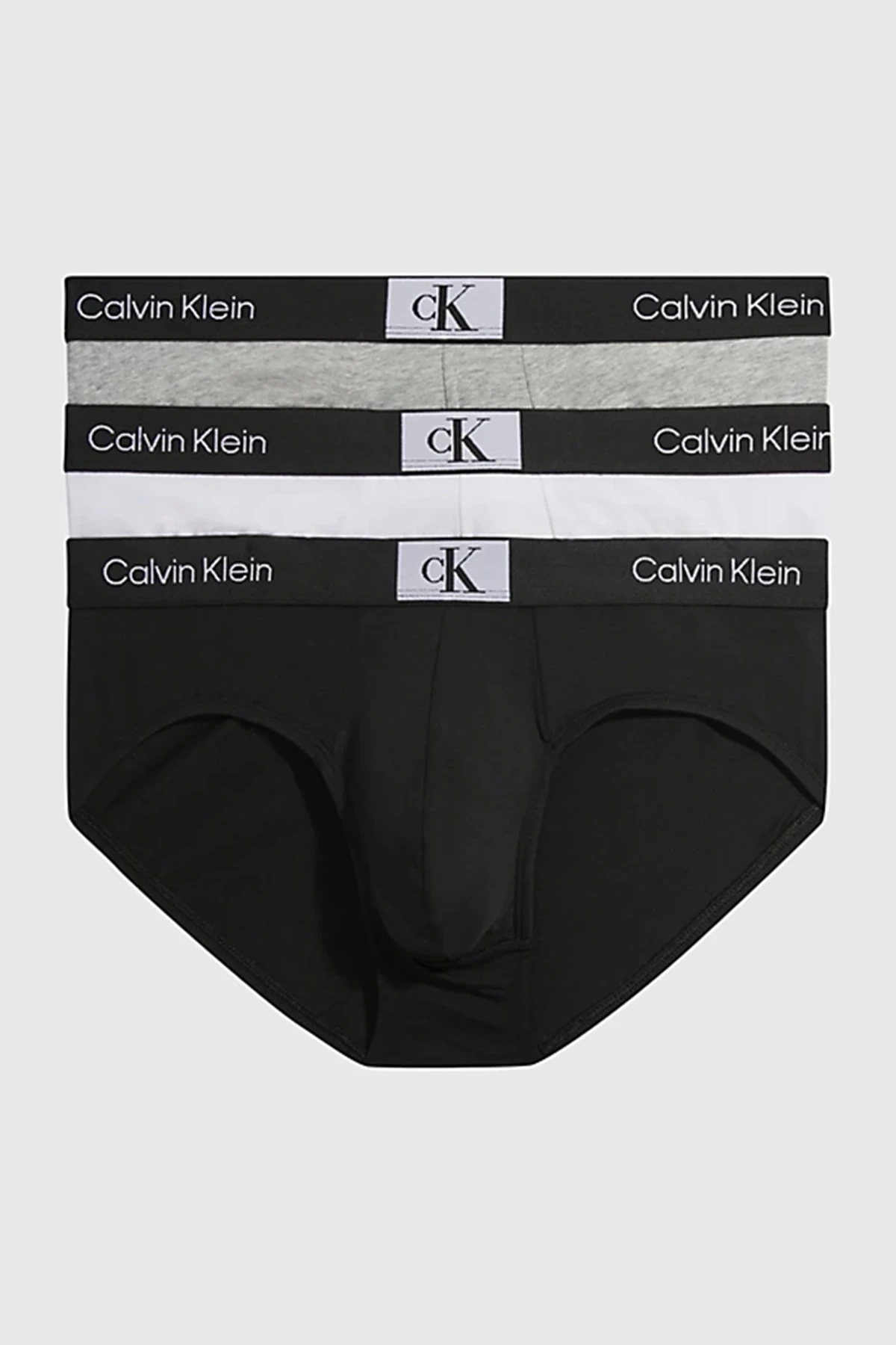 Erkek Basic 3'Lü Ck İmzalı Bel Bantlı Boxer - Siyah Beyaz Gri
