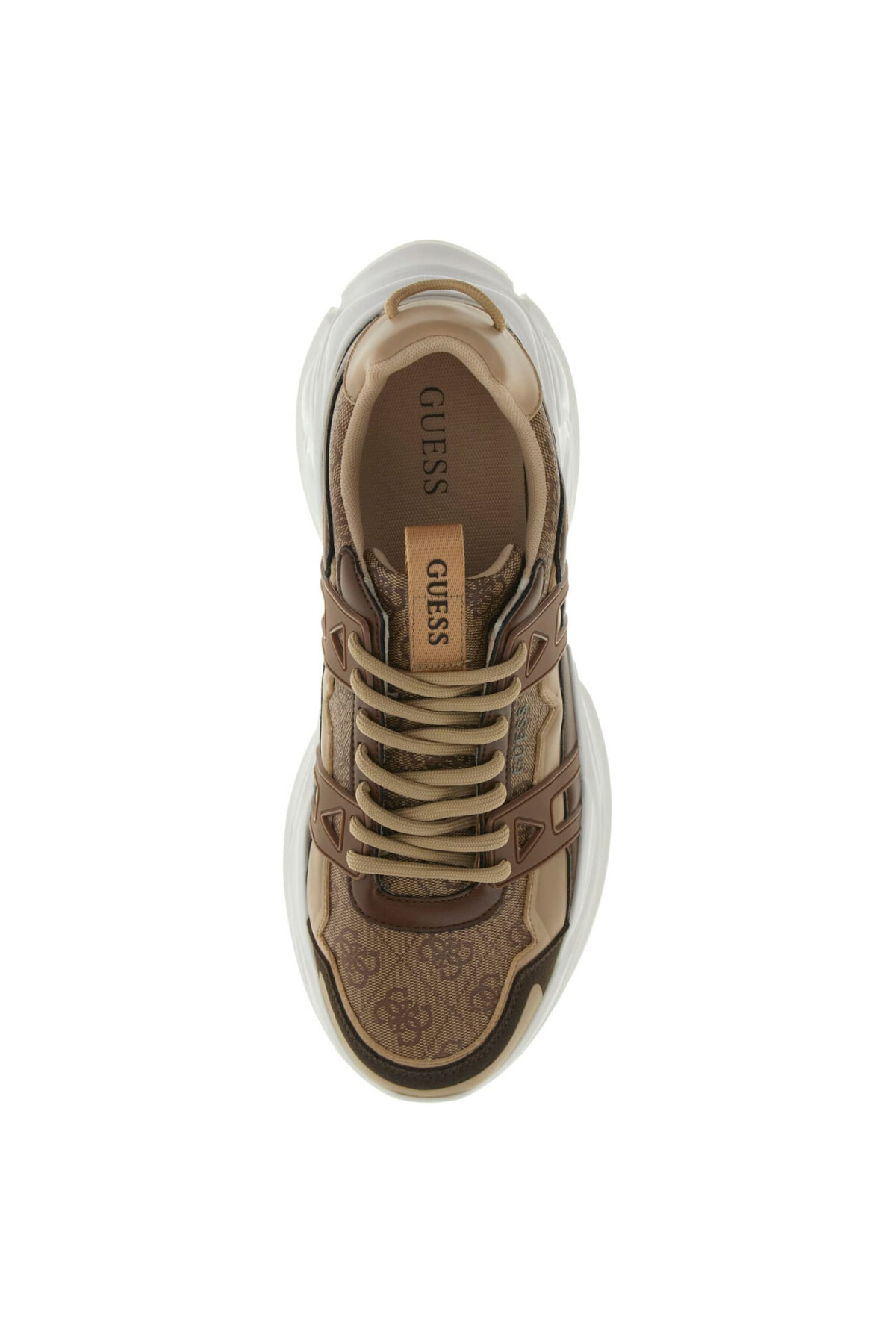 Guess’in ikonik stilini modern ve fonksiyonel bir formla birleştiren bu sneaker, şehir yaşamında hem lüks hem de dinamik bir görünüm sunuyor. %70 poliüretan, %20 polyester ve %10 inek derisi karışımından oluşan katmanlı üst yüzey, dayanıklılığı estetik bir dokuyla harmanlıyor. Bej ve kahverengi tonlarındaki panellerin uyumu, gövde üzerindeki all-over logo baskısıyla birleşerek markanın prestijli mirasını ön plana çıkarıyor. Yan kısımlardaki geometrik destek üniteleri ve dil üzerindeki logo şeridi, tasarıma modern bir derinlik katarken; 4,5 cm’lik yüksek beyaz dış taban yapısı gün boyu maksimum konfor ve güçlü bir postür sağlıyor. Sofistike renk paleti ve sportif silüetiyle bu model, her adımda stilinizi bir üst seviyeye taşıyor.