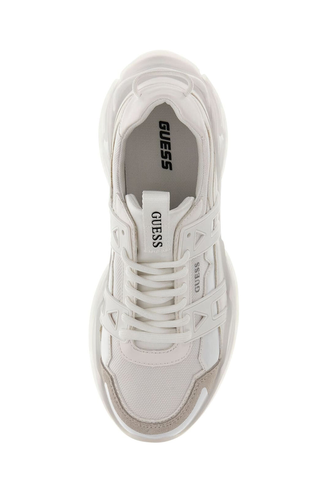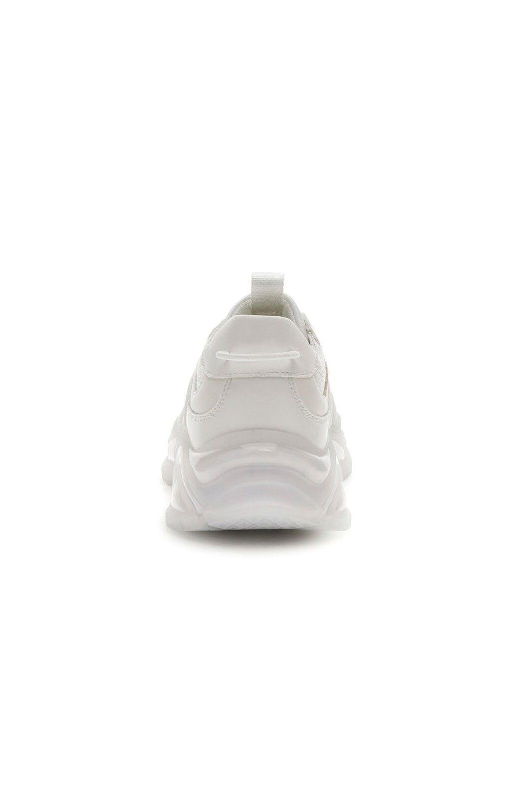 Guess’in modern ve lüks tasarım anlayışını yansıtan bu sneaker, tamamen beyaz görünümüyle temiz ve prestijli bir stil sunuyor. %75 poliüretan, %15 polyester ve %10 inek derisi karışımından oluşan dayanıklı üst yüzey, aynı tonlardaki dikiş detayları ve katmanlı panel yapısıyla zenginleştirilmiştir. Yan kısımlarda yer alan karakteristik geometrik destek üniteleri ve dil üzerindeki Guess logo şeridi, tasarıma modern bir derinlik katarken markanın ikonik imzasını korur. 4,5 cm’lik yüksek beyaz dış taban yapısı, hem postürünüzü destekleyerek daha uzun bir silüet sağlar hem de şehir hayatının yoğun temposunda gün boyu maksimum konfor sunar. Minimalist estetiği güçlü detaylarla birleştiren bu beyaz model, her türlü kombinle uyum sağlayacak zamansız bir parçadır.