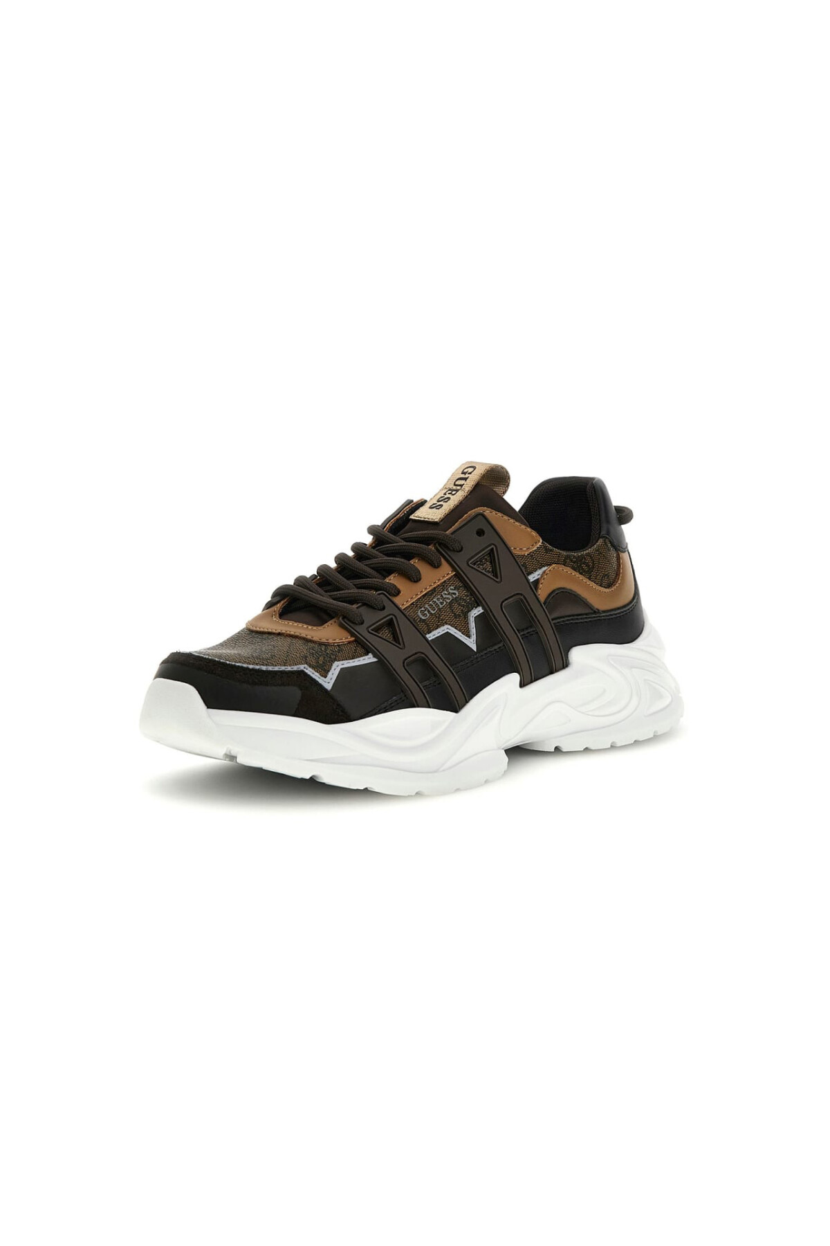 Guess’in güçlü marka mirasını fütüristik bir tasarım diliyle buluşturan bu sneaker, modern ve lüks bir sokak stili sunuyor. Gövde üzerindeki ikonik all-over logo baskısı sofistike bir duruş sergilerken, %70 poliüretan, %20 polyester ve %10 inek derisi karışımından oluşan katmanlı üst yüzey, dayanıklılığı estetikle birleştiriyor. Kahverengi ve siyah panellerin dinamik uyumu, yan kısımlardaki geometrik destek üniteleri ve dil üzerindeki logo şeridiyle zenginleştirilerek markanın özgün tarzını vurguluyor. 4,5 cm’lik yüksek ve beyaz dış taban yapısı, hem modern bir silüet hem de gün boyu maksimum konfor ve destek sağlıyor. Sportif şıklığı bir üst seviyeye taşıyan bu model, şehir hayatının her anında tarzınıza eşlik edecek iddialı bir parça.