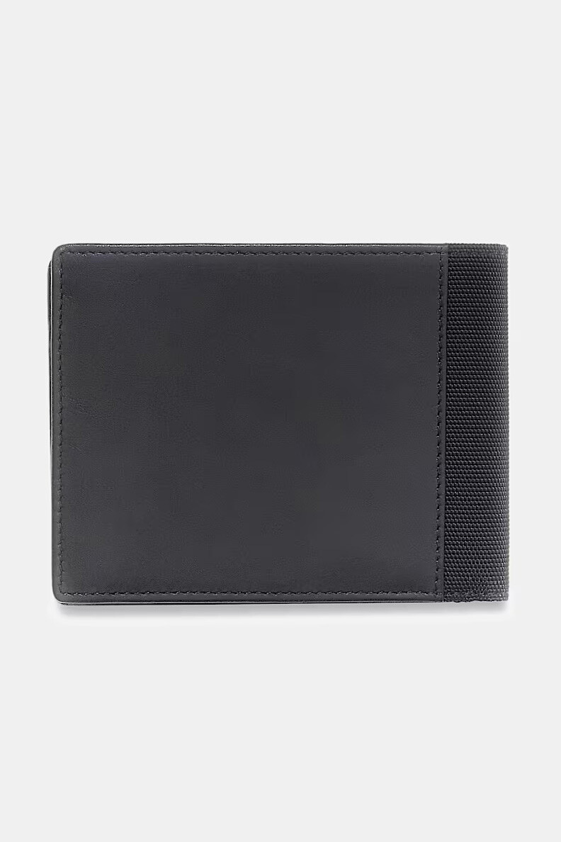 Siyah rengin zamansız asaletini, %100 hakiki inek derisinin dayanıklı ve kaliteli dokusuyla buluşturan Berna cüzdan, klasik aksesuar anlayışına sportif bir dokunuş katıyor. Tasarımın ön yüzünde, sol tarafı kaplayan dikey dokulu şerit detay ve sağ alt köşedeki gümüş renkli metal üçgen logo, modern ve dinamik bir görünüm sergiliyor. İkiye katlanır pratik yapısının içinde; 4 adet kart yuvası, geniş kağıt para bölmesi ve çıtçıt kapaklı bozuk para cebi yer alıyor. Ayrıca iç kısımdaki ikon, RFID (temassız kart koruma) teknolojisine sahip olduğuna işaret ederek güvenli bir kullanım vadediyor.