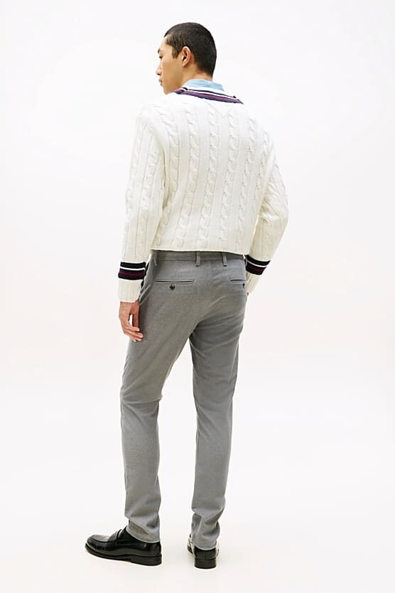 Günlük gardırobunuz için akıllı bir seçim olan bu chino pantolon, şıklığı ve konforu bir araya getiriyor. Melanj kumaşı, pantolona hem yumuşak bir dokunuş hem de dokulu, sofistike bir görünüm kazandırır. Vücuda oturan modern slim fit kalıbı, zarif bir silüet yaratır. İki adet eğimli yan cebi ve iki adet düğmeli arka cebiyle fonksiyonel bir kullanım sunan pantolon, arkadaki minimal nakışlı amblemiyle detaylandırılmıştır. Hem triko kazaklarla hem de şık gömleklerle mükemmel uyum sağlayarak stilinizi zahmetsizce tamamlar.