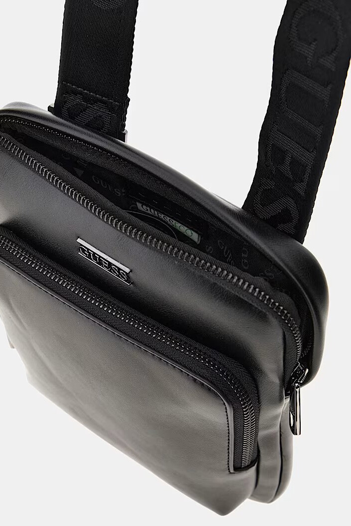 Minimalist tasarım anlayışını sportif bir kimlikle buluşturan Boston çapraz askılı çanta, siyah rengin asil ve çok yönlü duruşunu sunuyor. Poliüretan malzemeden üretilen pürüzsüz gövdesi, ön yüzdeki metal logo plakasıyla şık bir detay kazanıyor. Geniş ve üzeri kabartma yazılı dokuma omuz askısı tasarıma modern ve dinamik bir hava katarken, fermuarlı ana bölme ve ön kısımdaki ekstra fermuarlı cep, anahtar veya telefon gibi eşyalarınıza hızlı erişim imkanı tanıyor. Arka yüzdeki açık cep pratik bir saklama alanı oluştururken, gümüş renk metal aksesuarlar tasarımı tamamlıyor.