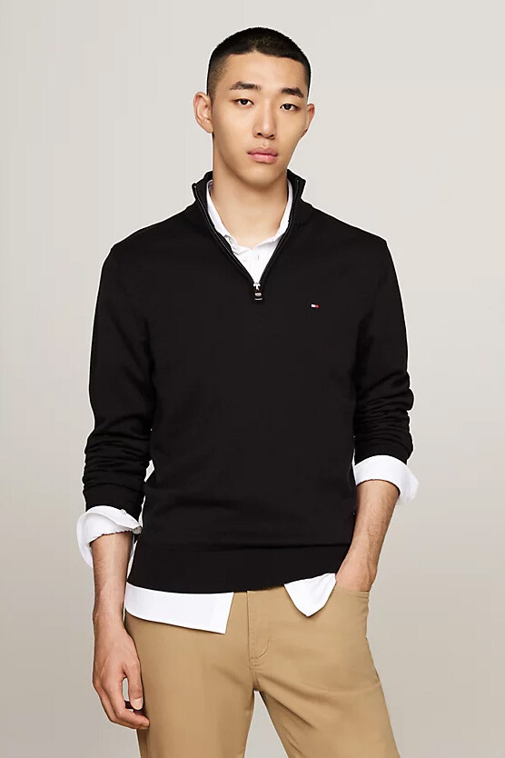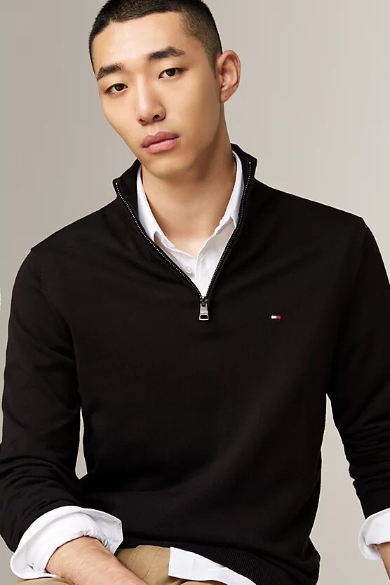 Erkek Çeyrek Fermuarlı Balıkçı Yaka Kazak - Siyah
