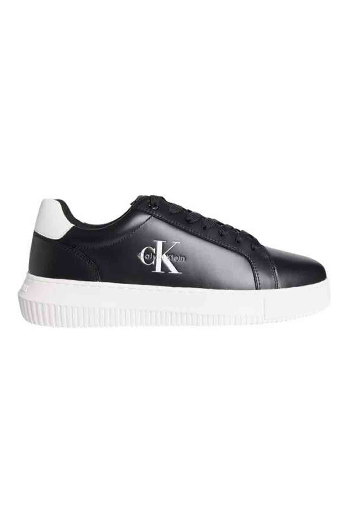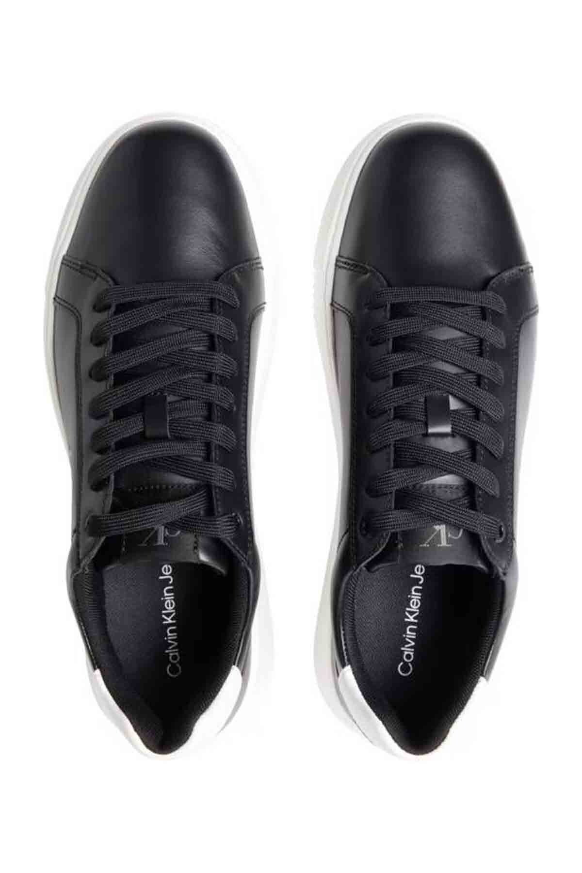 Erkek Siyah Chunky Cupsole Deri Sneaker Spor Ayakkabı