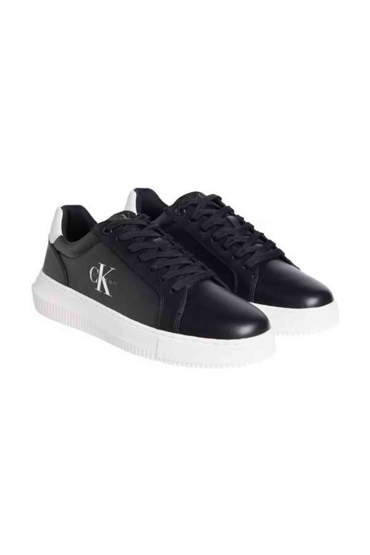 Erkek sneaker ayakkabı modeli, siyah deri üst yüzeyi ile modern ve şık bir görünüm sunar. Chunky (kalın) beyaz tabanı ile gün boyu rahat kullanım sağlar ve bağcıklı yapısıyla ayağı tam kavrar. Siyah ve beyaz renk kontrastıyla spor veya günlük kombinlerinizde rahatlıkla tercih edebilirsiniz.
