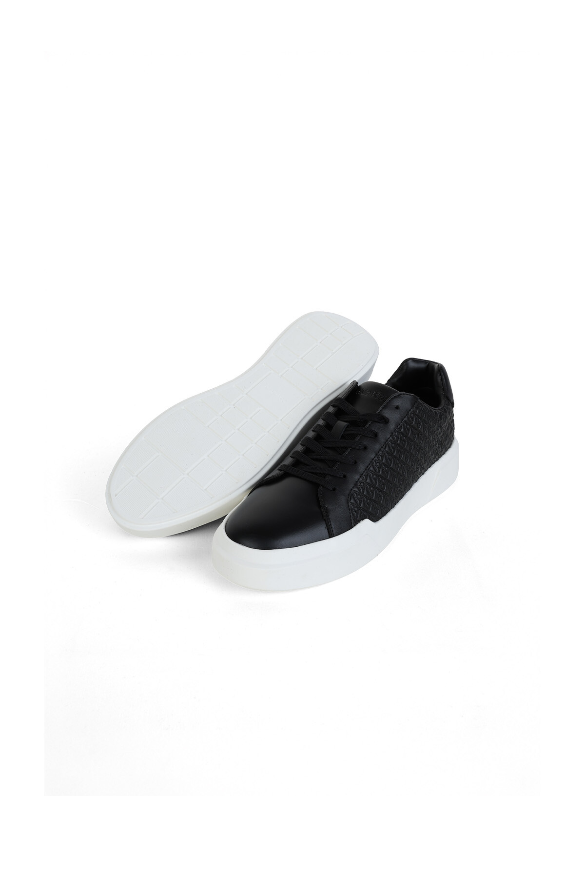 Siyahın asaletini beyaz tabanın keskin kontrastıyla buluşturan bu Chunky Cupsole sneaker, %100 poliüretan yapısıyla dayanıklılığı ve şıklığı bir arada sunar. Modern sokak stilinin vazgeçilmezi olan kalın taban tasarımı, trend bir silüet yaratırken gün boyu konfor sağlar. Ayakkabının yan panellerinde yer alan geometrik marka logolu kabartma desenler (AOP - All Over Print), pürüzsüz görünümlü yüzeye derinlik ve lüks bir doku kazandırır. Low Top (bileksiz) kesimi ve klasik bağcıklı yapısıyla pratik bir kullanım sunan bu model, jeanlerden şortlara kadar geniş bir kombin yelpazesi için idealdir.