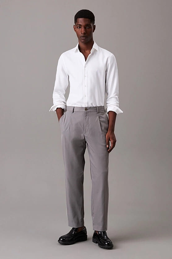 Erkek Ck Non Iron Structure Slim Gömlek - Beyaz