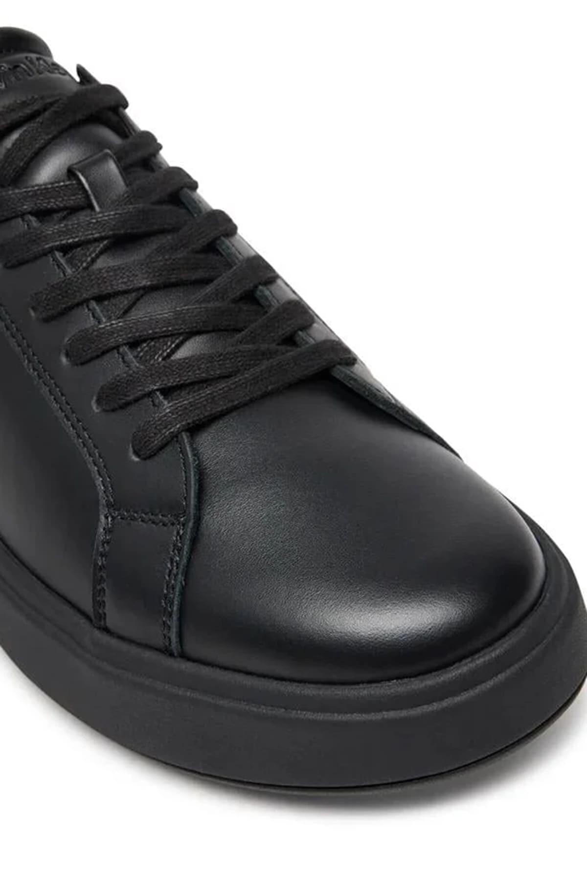 Erkek Ck Rahat Düz Taban Pürüzsüz Üst Yüzey Deri Sneaker Ayakkabı - Siyah