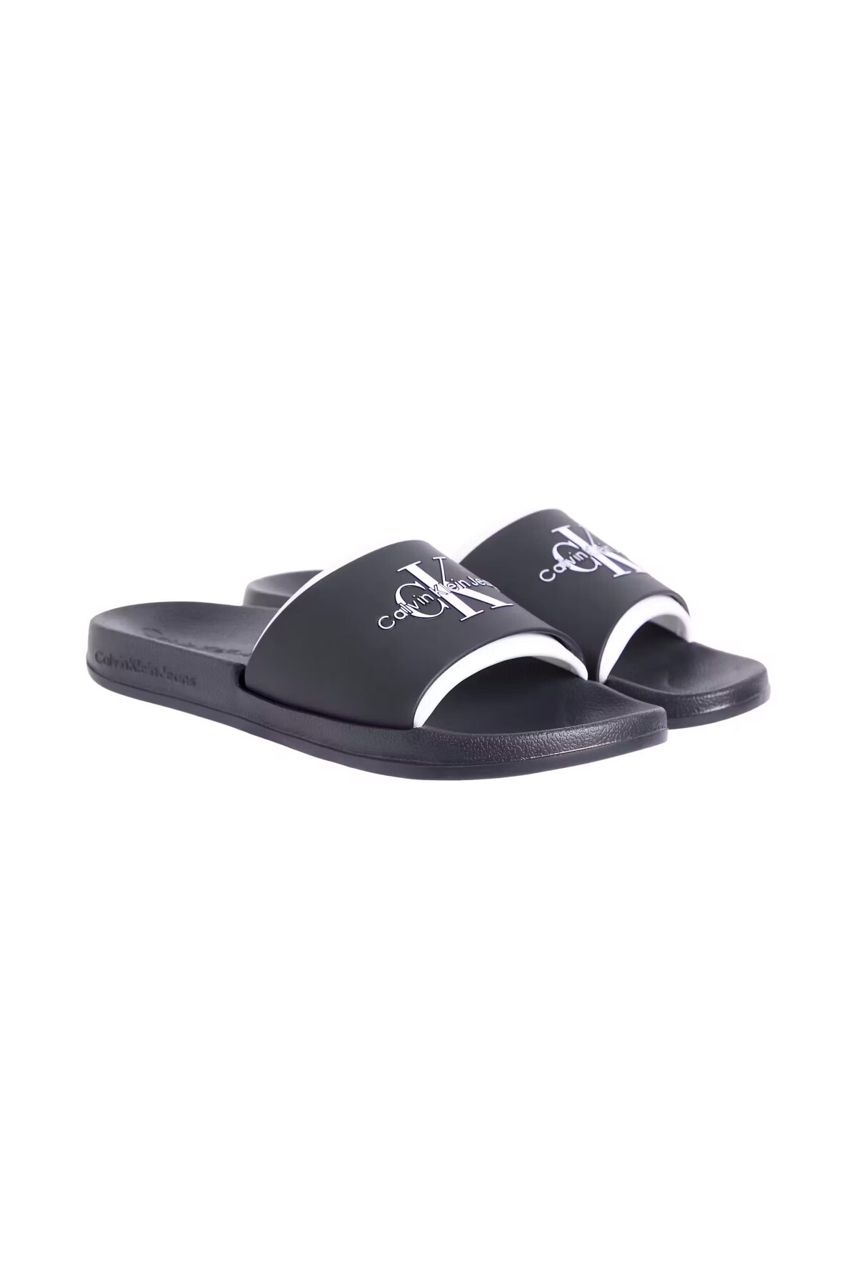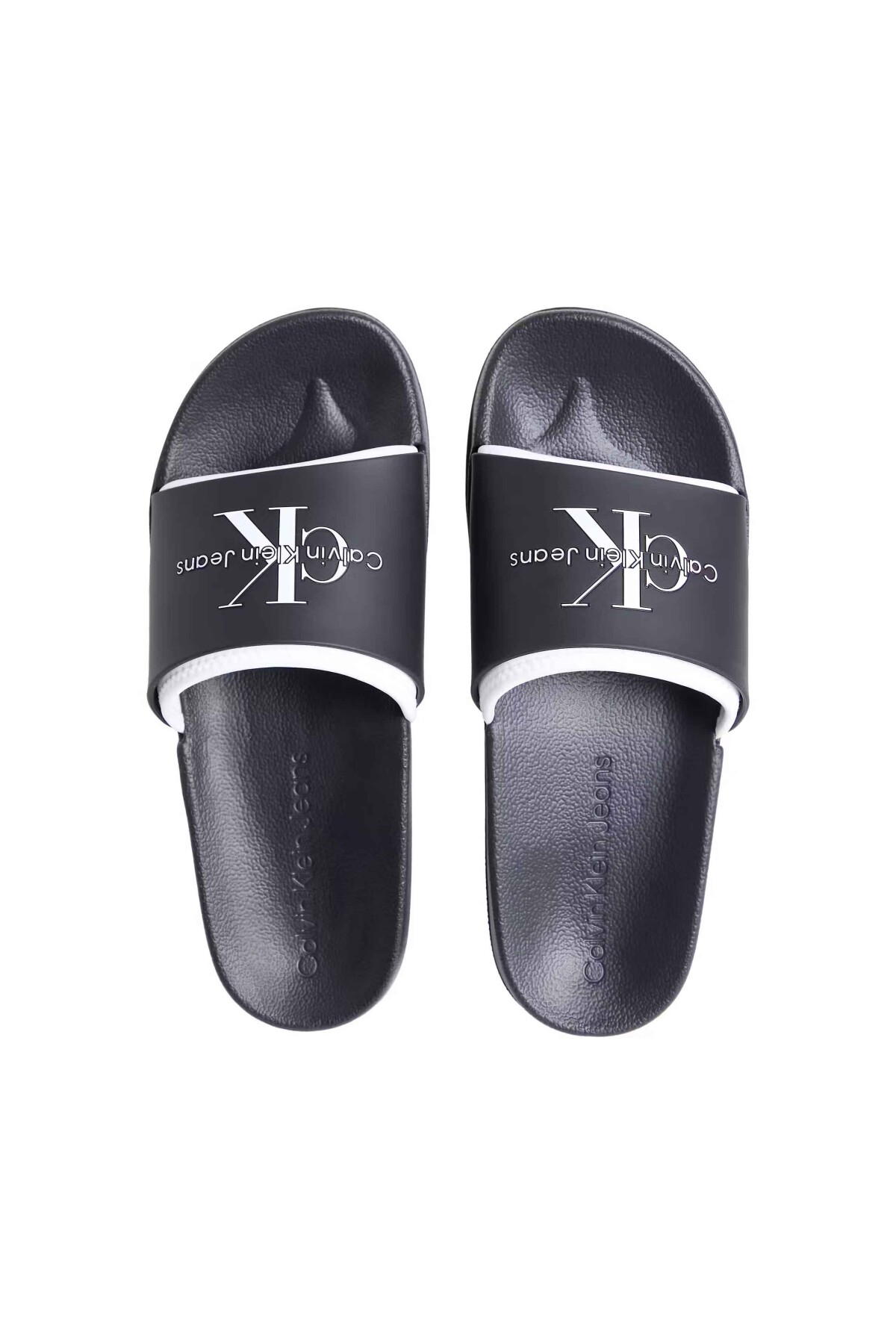 Erkek Ck Slide Rubber Neoprene Terlik - Siyah/Beyaz
