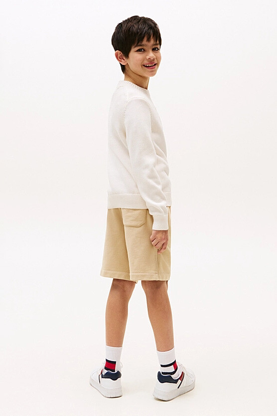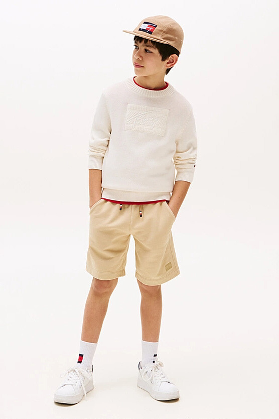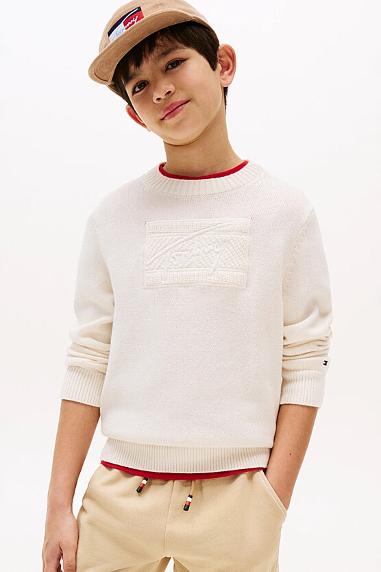 Klasik triko kazak, modern ve dokulu bir detayla çocukların stiline şıklık katıyor. Nefes alan %100 pamuklu triko kumaşı, hassas ciltler için yumuşak bir dokunuş sunarken, esnek yapısıyla gün boyu rahat hareket imkanı sağlar. Tasarımın odak noktasını, göğüs kısmında yer alan ve aynı tonlarda (tonal) işlenmiş kabartma grafik deseni oluşturur. Bu üç boyutlu doku, kazağa özgün ve sofistike bir hava katar.