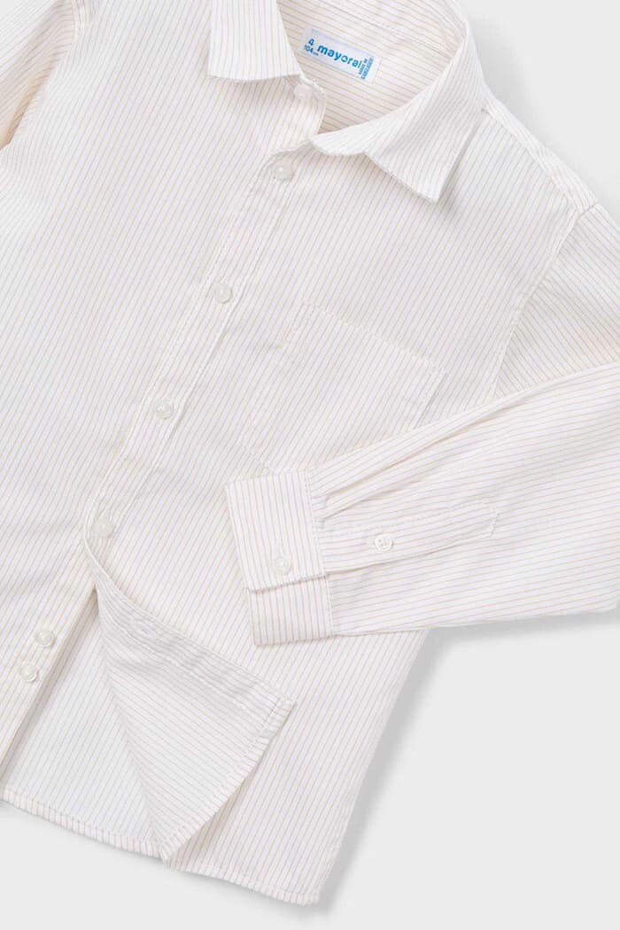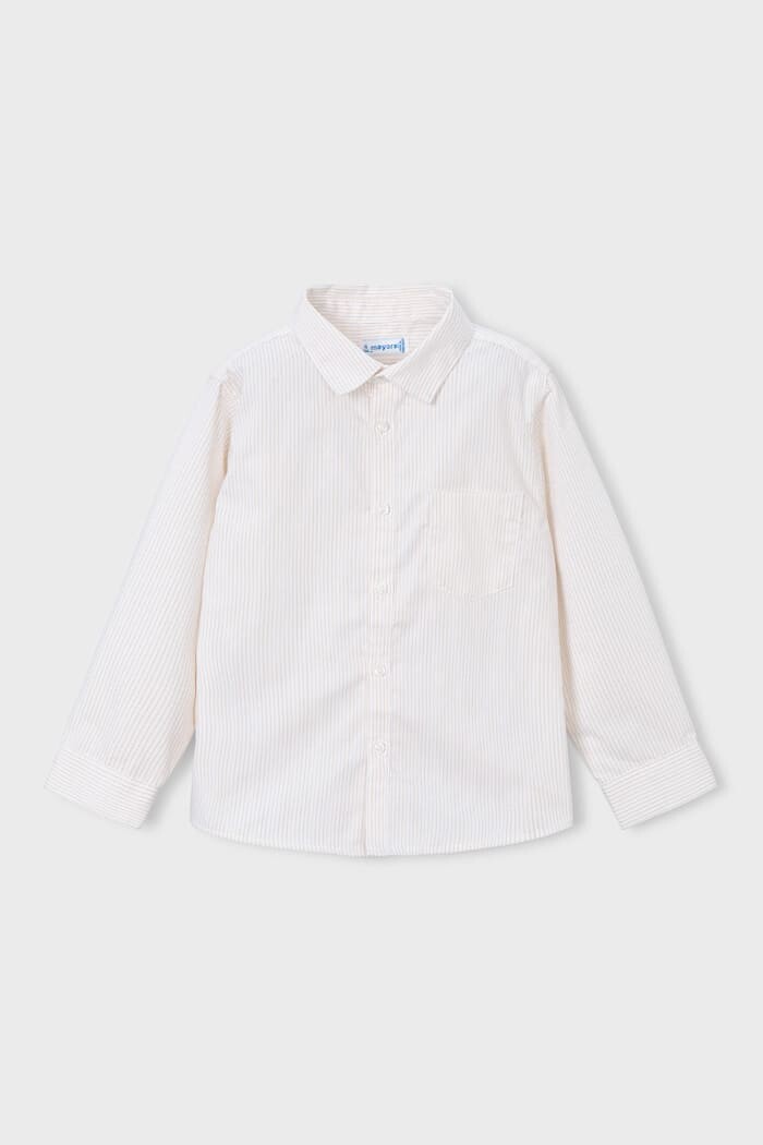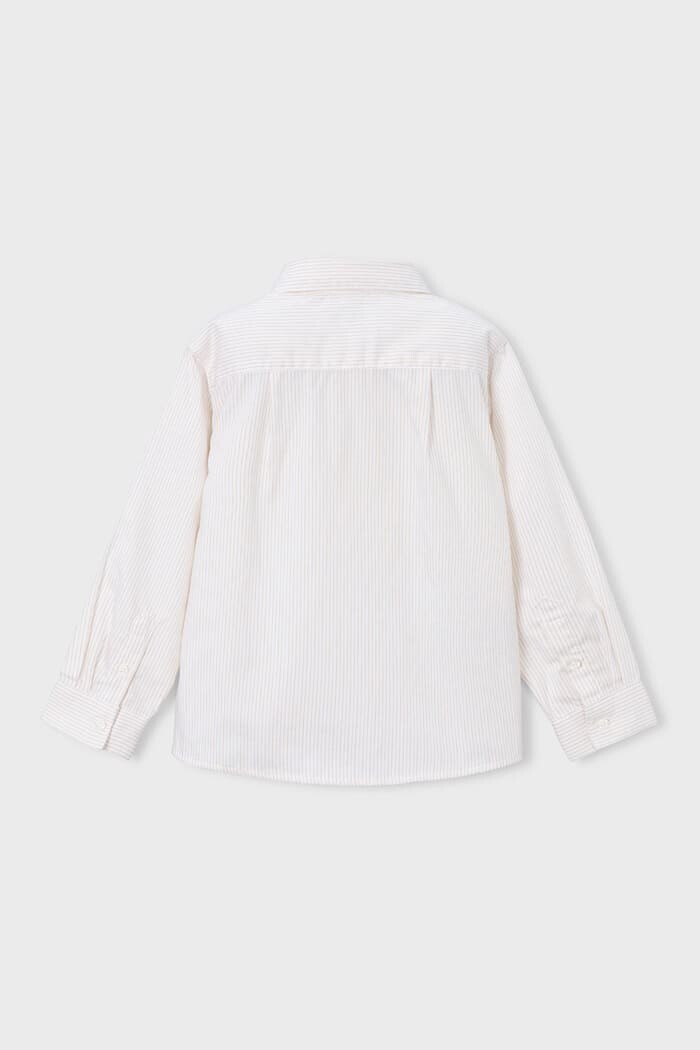 Her gardırobun olmazsa olmazı olan bu çizgili gömlek, zamansız şıklığı ve konforu bir araya getiriyor. %100 pamuklu, nefes alan kumaşı, en özel günlerde bile çocuğunuzun rahat etmesini sağlar. Klasik kesimi, incelikli dikey çizgileri, düğmeli önü ve tek göğüs cebi ile sade ve zarif bir tasarıma sahiptir. Özel günler, bayramlar veya okul etkinlikleri için pantolonlar ve ceketlerle kolayca kombinlenebilen bu gömlek, her zaman şık bir görünüm garantiler.