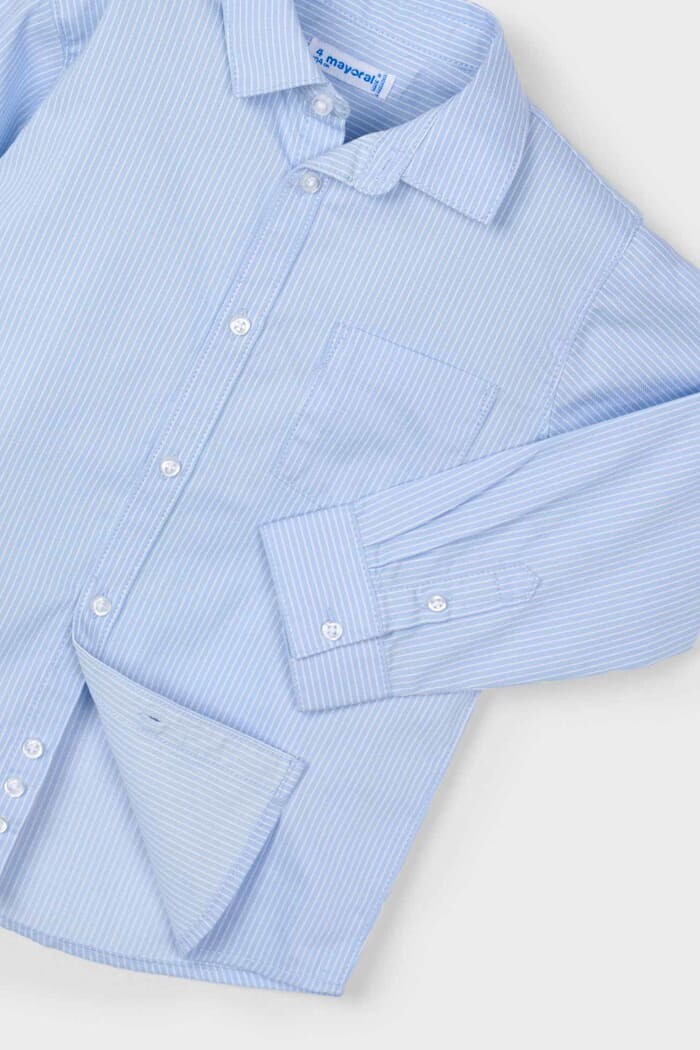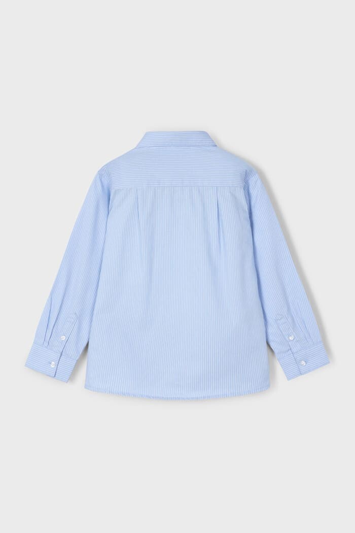 Erkek Çocuk Cepli Çizgili Uzun Kollu Gömlek - Mavi