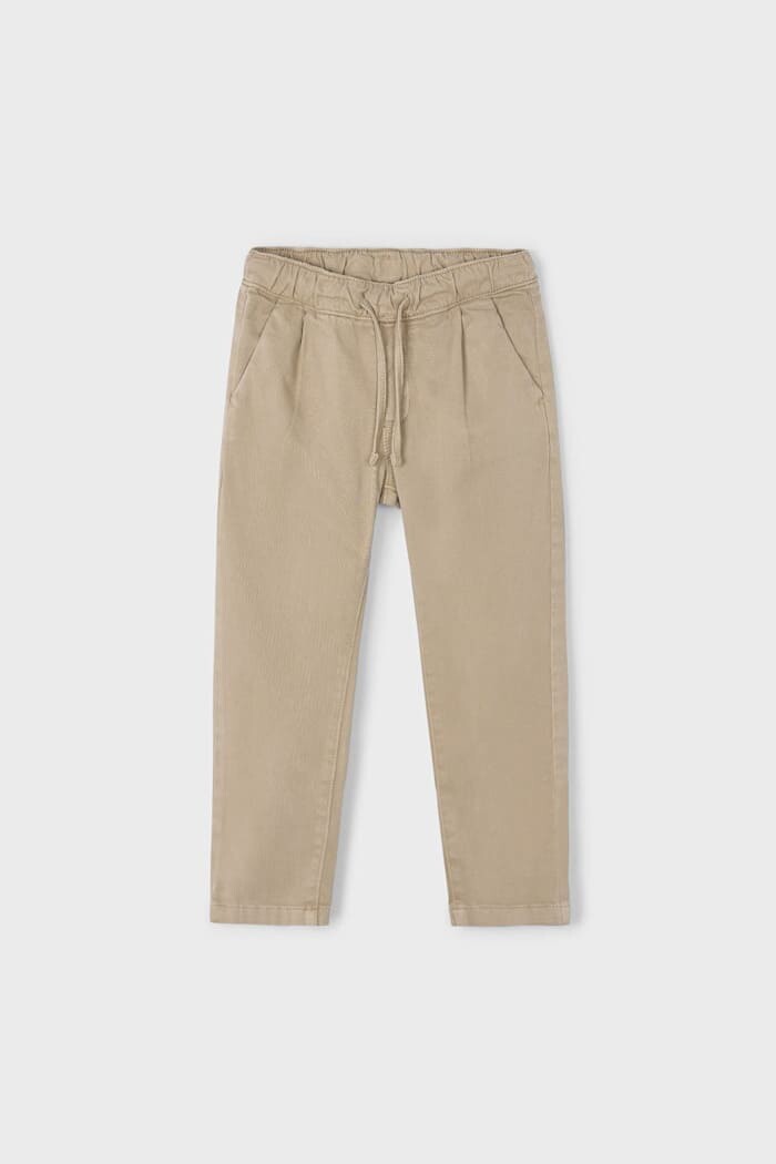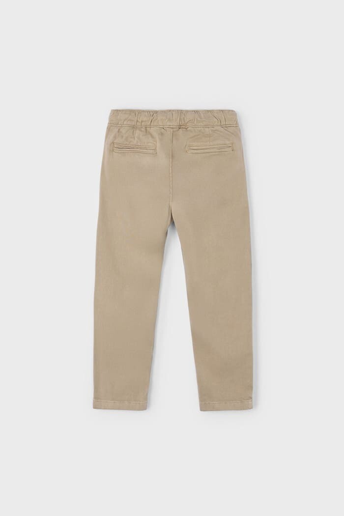 Klasik chino şıklığını jogger pantolonun modern konforuyla birleştiren bu parça, çocuk gardıroplarına dinamik bir dokunuş katıyor. Pamuk ağırlıklı esnek kumaşı, gün boyu süren maceralarda bile maksimum rahatlık ve hareket özgürlüğü sağlar. Ayarlanabilir bağcıklı lastikli bel yapısı, pratik bir kullanım sunarken vücuda mükemmel uyum sağlar. Hem şık gömleklerle hem de rahat t-shirt'lerle kolayca kombinlenebilen bu çok yönlü pantolon, okuldan özel günlere kadar her ortam için ideal bir seçimdir.