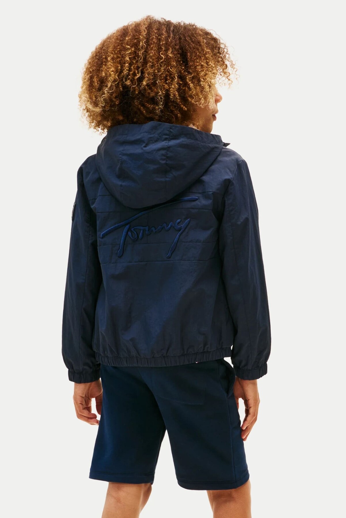 Değişken havalar için tasarlanmış bu rüzgarlık, çocukların gardırobuna hem stil hem de fonksiyonellik katıyor. Hafif ve dayanıklı kumaşı, rüzgara ve hafif yağmura karşı koruma sağlarken, astarlı iç yapısı konforu artırır. Sırt kısmında yer alan, kendi rengindeki büyük ve zarif script logo işlemesi, tasarıma modern ve havalı bir imza atar. Kapüşonu, tam boy fermuarı ve lastikli etek ucu gibi pratik detayları ile bu ceket, dışarıdaki tüm maceralar için ideal bir katmandır.