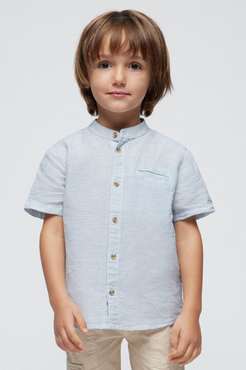 Erkek Çocuk Kısa Kollu Keten Gömlek - Mavi