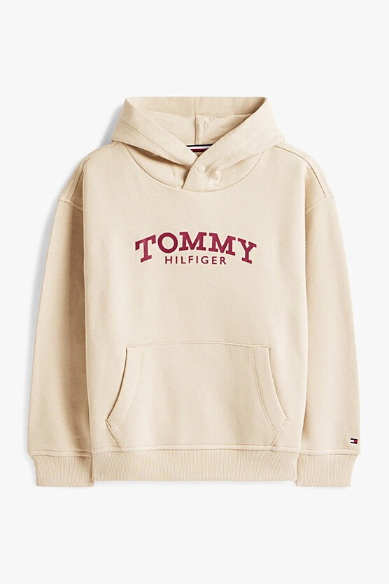 Soğuk havalarda ihtiyaç duyulan sıcaklığı %80 rejeneratif pamuklu yumuşak dokusuyla sunan bu kapüşonlu sweatshirt, çocukların hassas cildine nazikçe dokunarak gün boyu üstün bir konfor sağlar. Göğüs kısmındaki kolej stili kavisli marka yazısı, tasarıma zamansız ve sportif bir karakter kazandırır. Yaka kısmındaki özel çıtçıt detayı, hem giyip çıkarmayı kolaylaştırır hem de kapüşonun daha tok ve düzgün durmasını destekler. Geniş kanguru cep detayı elleri ısıtmak veya küçük eşyaları taşımak için pratik bir alan sunarken, etek ucu ve kollardaki esnek ribana manşetler ürünün formunu korumasına yardımcı olur.