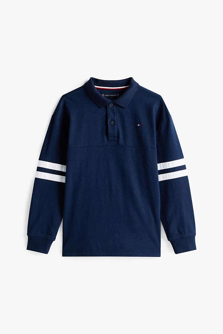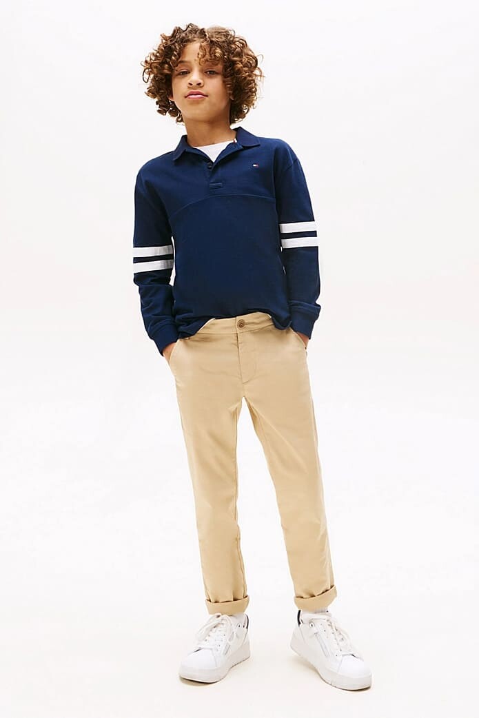 Polo yakanın klasik şıklığını, sportif detaylarla birleştiren bu uzun kollu tişört, çocukların gardırobu için çok yönlü bir parçadır. %100 pamuklu konforlu kumaşı, gün boyu rahat bir kullanım sunar. Kollarını süsleyen dinamik çift şerit detayı, tasarıma havalı ve enerjik bir kolej stili dokunuşu katar. Hem okulda hem de özel günlerde, chino pantolonlar veya jean'ler ile kolayca kombinlenerek şık ve derli toplu bir görünüm yaratır.