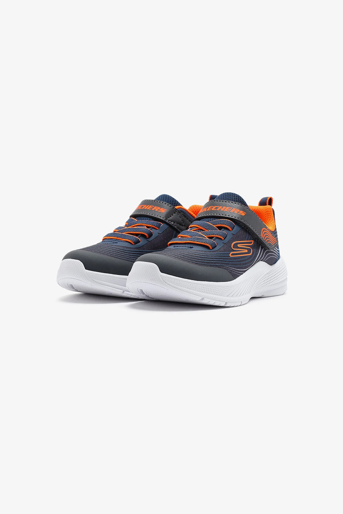 Genç sporcuların bitmek bilmeyen enerjisine uyum sağlamak için tasarlanan Microspec Advance, lacivert zemin üzerine canlı turuncu detaylarıyla dinamik bir stil sunuyor. Ayakkabının çok renkli file sayası ve üzerindeki dokunsal baskı kaplamaları, hem modern bir görünüm yaratır hem de hafifliğiyle hareket özgürlüğünü destekler. Çocukların kendi başlarına rahatça giyip çıkarabilmeleri için geliştirilen Adaptive Closure (kolay açılır-kapanır) sistemi ve esnek bağcıklar, ayağa kişiye özel, mükemmel bir uyum sağlar. Yastıklı konforlu iç tabanı gün boyu yumuşak adımlar vadederken, makinede yıkanabilir özelliği ebeveynler için büyük bir temizlik kolaylığı sunar.