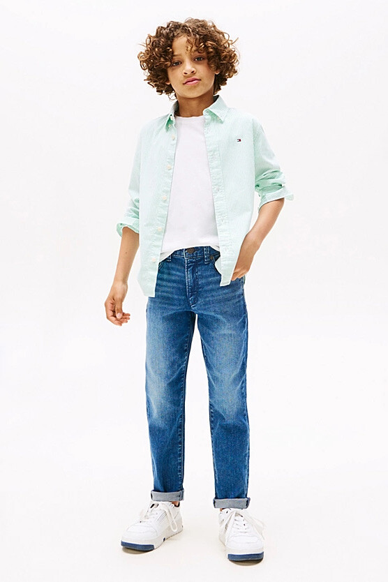 Klasik ve havalı bir stil sunan bu jean pantolon, çocukların gardırobunun vazgeçilmez bir parçasıdır. Esnek pamuklu denim kumaşı, en hareketli günlerde bile konfor ve hareket özgürlüğü sağlar. Modern düz kesimi, rahat bir kullanım sunarken, eskitme efektli vintage yıkaması pantolona karakterli ve yaşanmış bir görünüm katar. Her türlü tişört ve sweatshirt ile kolayca kombinlenebilen bu dayanıklı jean, okuldan parka her macera için idealdir.